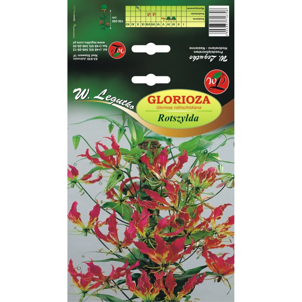 Pěstování: Po přípravě drenážní vrstvy v květináči a jejím naplnění zeminou by měly být hlízy umístěny vodorovně, pupenem směrem ke středu nádoby, pokryty 3-5 cm vrstvou zeminy. Glorióza nejlépe roste v lehké, úrodné a humózní půdě. Mělo by být zajištěno teplé, slunečné a proti větru chráněné stanoviště. Vyžaduje použití podpěr. Na jaře, po odeznění nebezpečí mrazů, může být květináč s rostlinou umístěn venku, nezapomeňte ji pravidelně zalévat. Po odkvětu je třeba zálivku postupně snižovat, čímž rostlinu uvedete do období klidu.