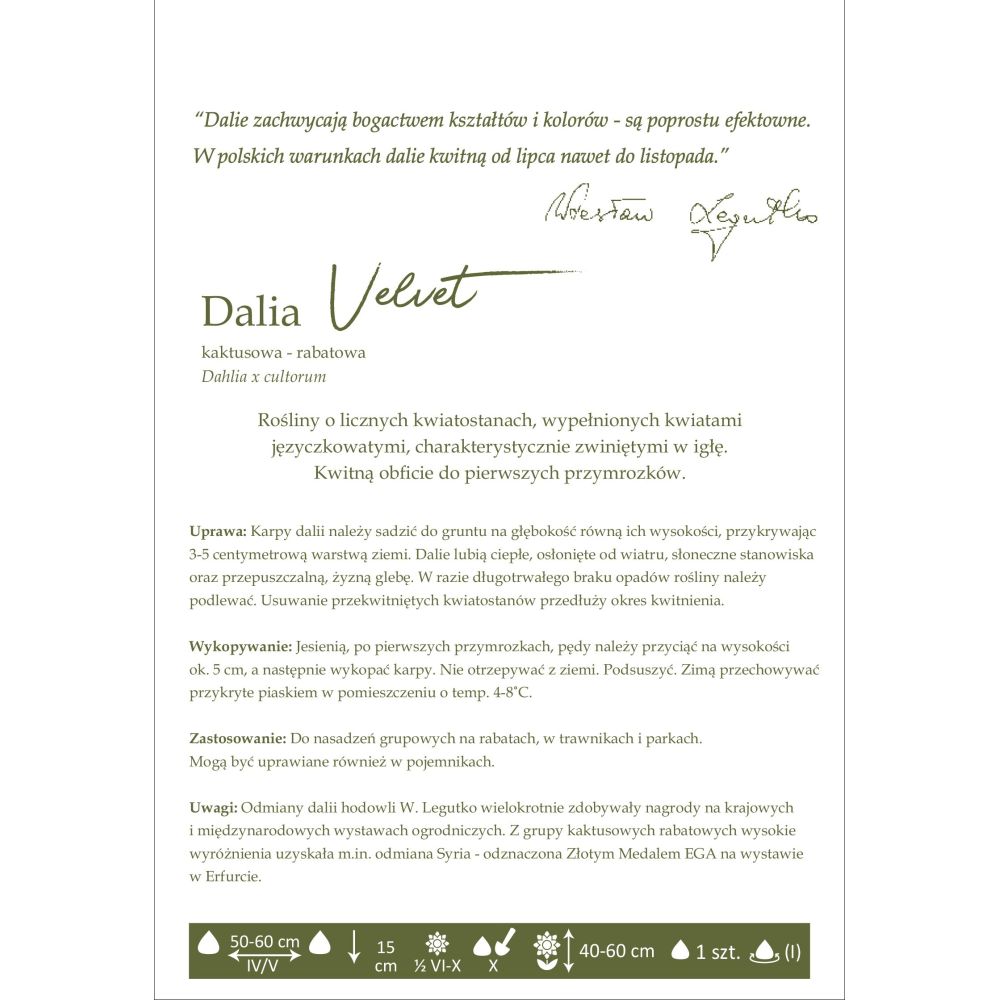 Komentář: Odrůdy jiřin vyšlechtěné W. Legutkem opakovaně získaly ocenění na národních i mezinárodních zahradnických výstavách. Ze skupiny podestýlkových kaktusů získala vysoká ocenění mj. Odrůda Syria - oceněná zlatou medailí EGA na výstavě v Erfurtu