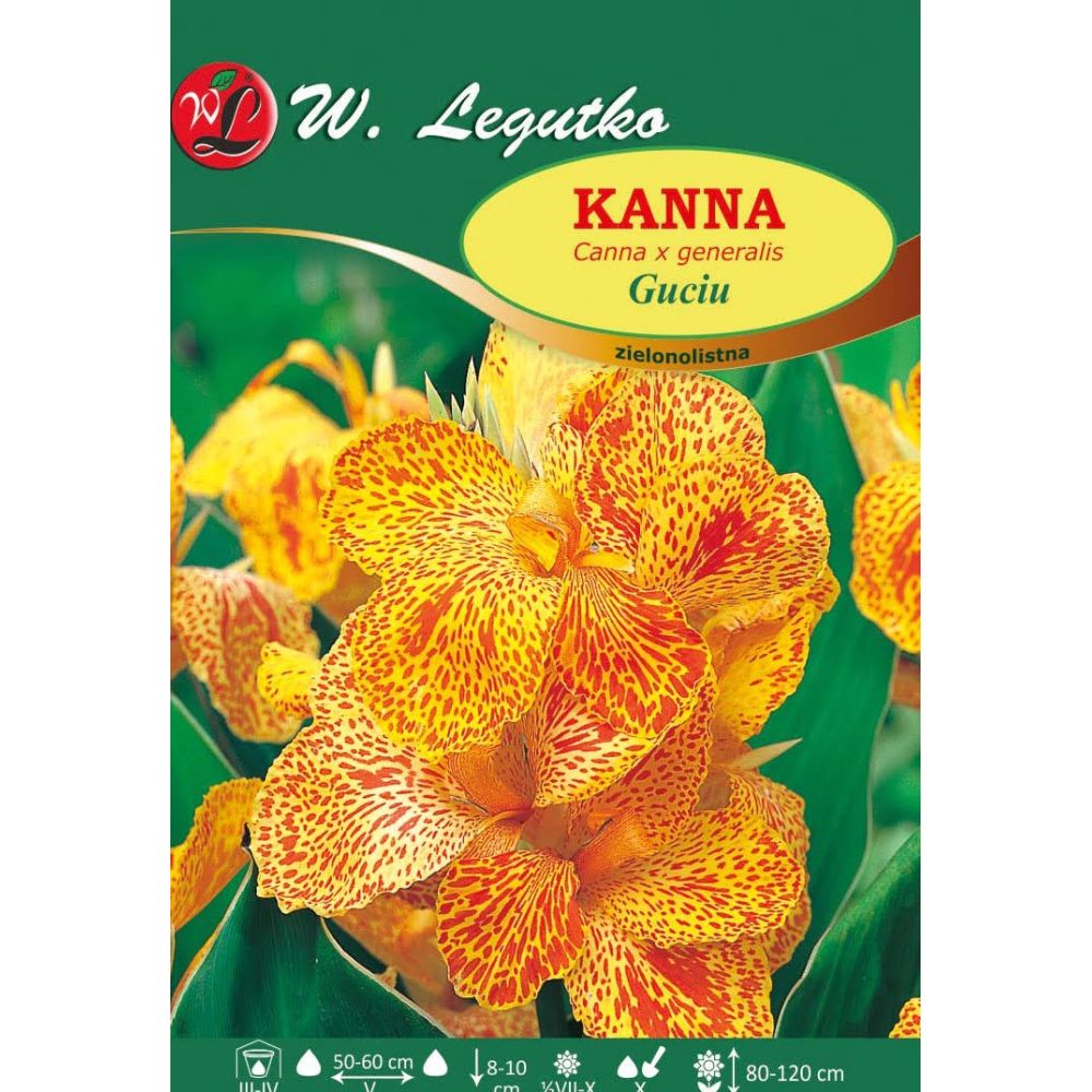 Canna - canna x generalis - zelený list - Guciu - zlatožlutá s červenými skvrnami - 1 ks.