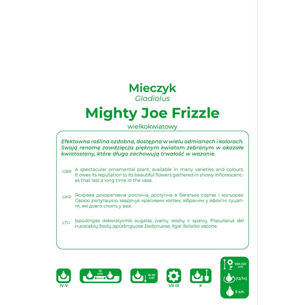 Pěstování: Nejlepší je sázet hlízy ve skupinách, pamatujte na to, že jejich příliš mělká výsadba může vést k pádu rostlin. Optimální podmínky pro růst mečíků jsou slunné, větrem chráněné stanoviště a humózní, na živiny bohatá, propustná půda. Rostliny pravidelně zalévejte. Během vegetačního období je lze několikrát krmit hnojivem. Pro stimulaci růstu hlíz je třeba odstranit vybledlé květy.