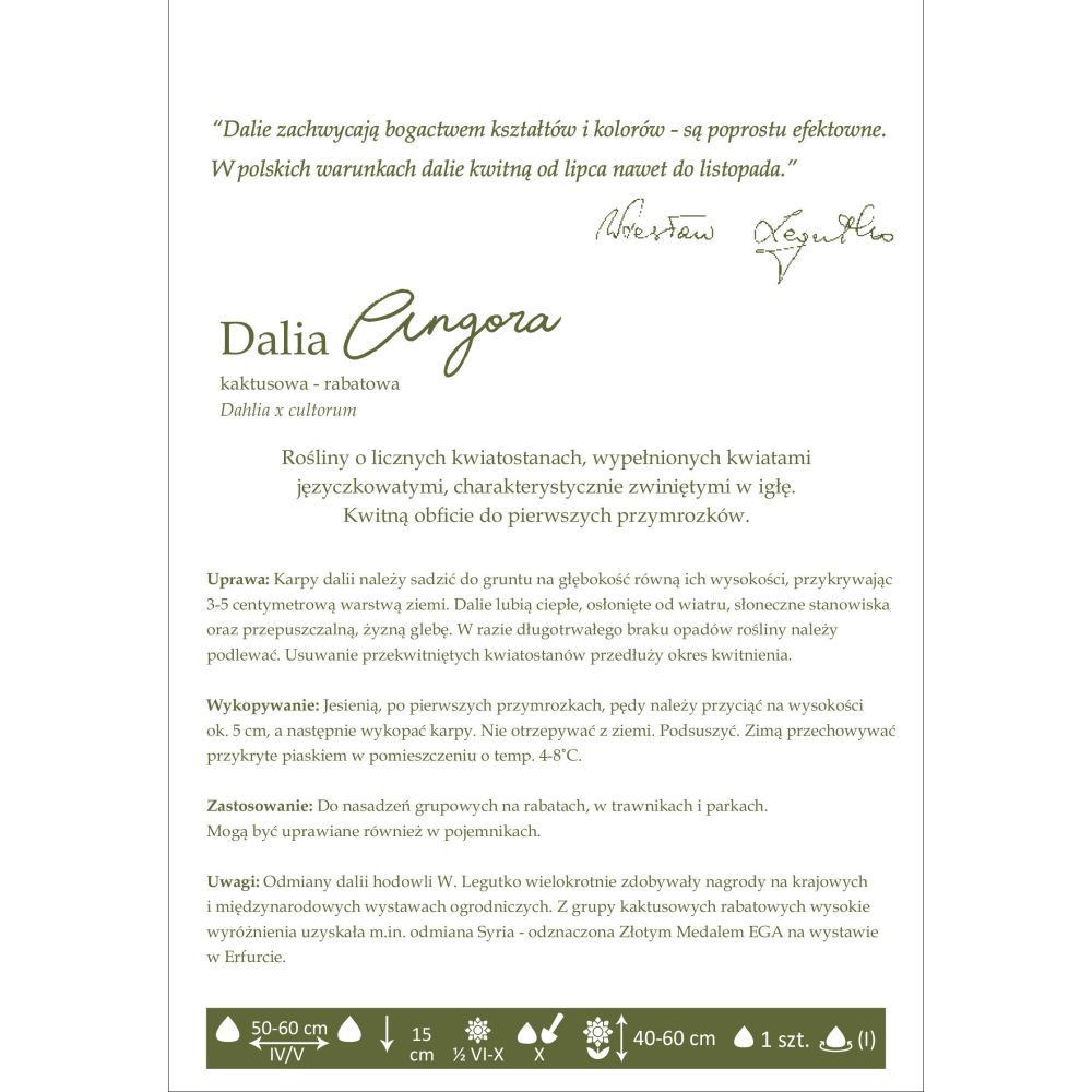 Komentář: Odrůdy jiřin vyšlechtěné W. Legutkem opakovaně získaly ocenění na národních i mezinárodních zahradnických výstavách. Ze skupiny podestýlkových kaktusů získala vysoká ocenění mj. Odrůda Syria - oceněná zlatou medailí EGA na výstavě v Erfurtu