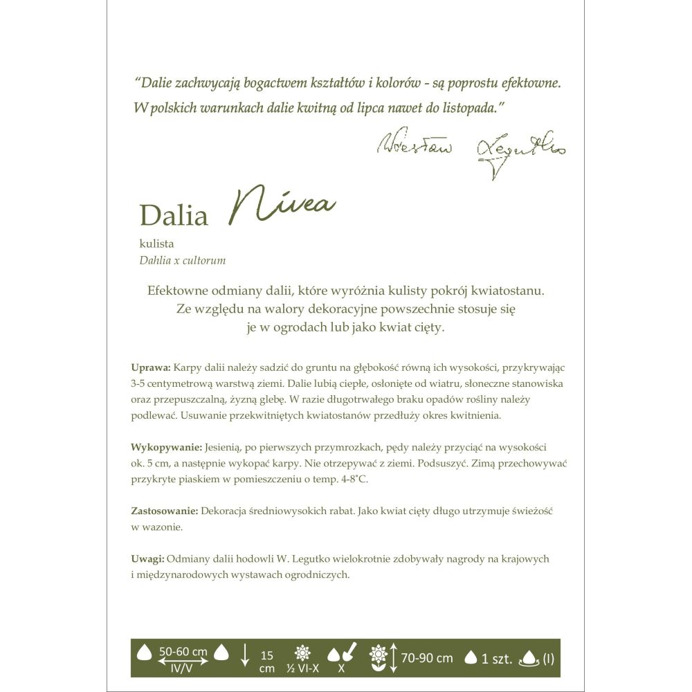 Komentář: Odrůdy jiřin vyšlechtěné W. Legutkem opakovaně získaly ocenění na národních i mezinárodních zahradnických výstavách.