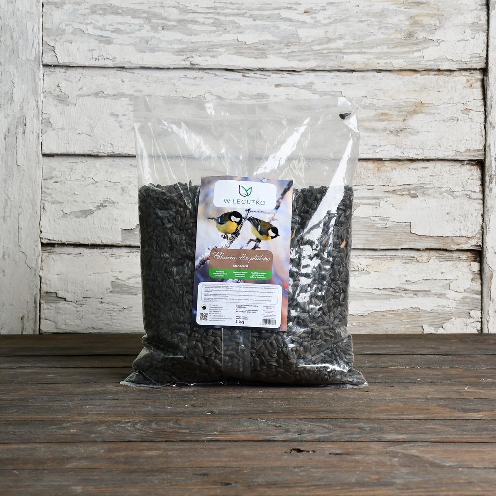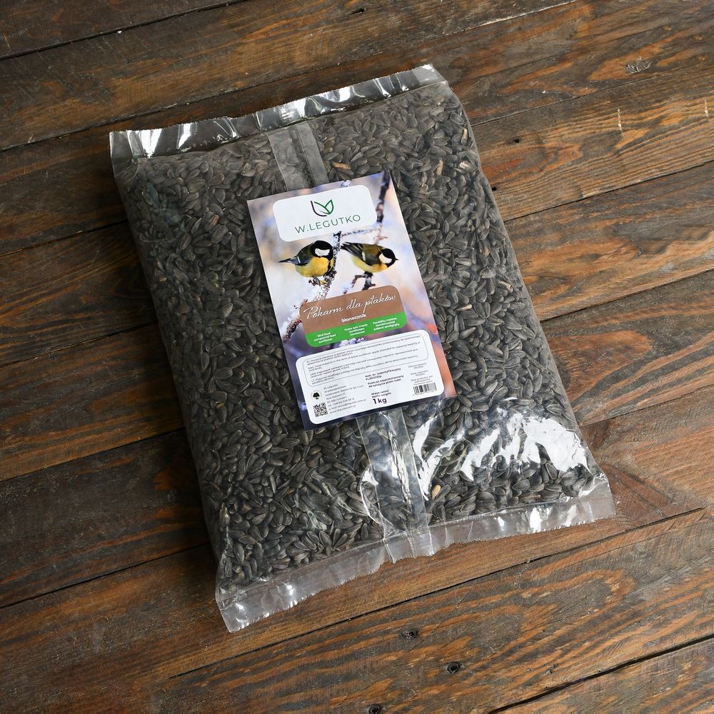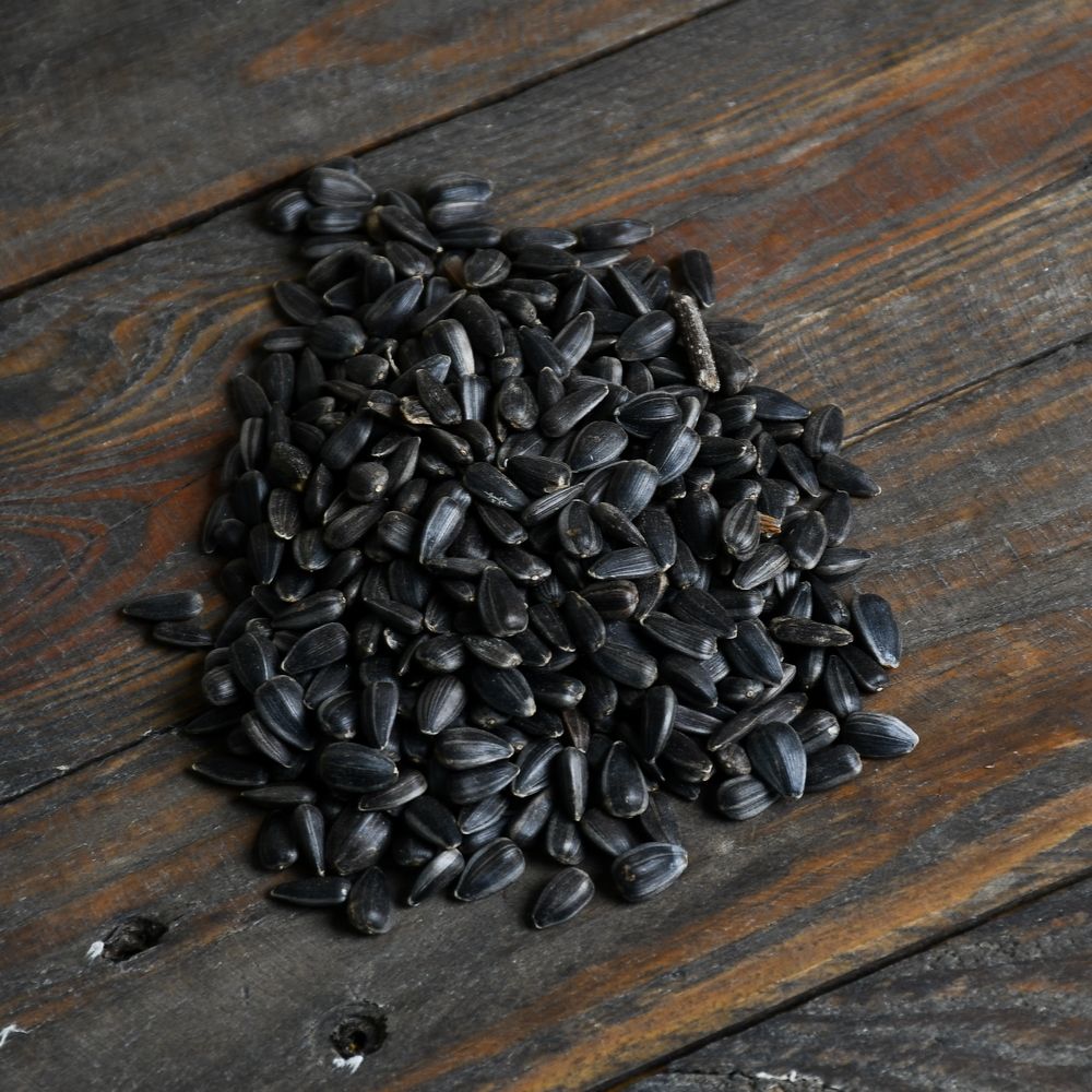 Krmná surovina ve formě slunečnicových semínek černá určená pro sezónní krmení volně žijících ptáků.
