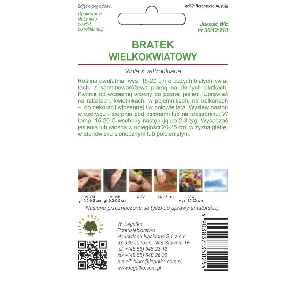 Dvouletá rostlina, 15-20 cm vysoká, s velkými bílými květy, s karmínově růžovou skvrnou na spodních okvětních lístcích. Výsev semen v červnu až srpnu pod krytem nebo na seťovém lůžku. Vzcházení nastává po 2-3 týdnech.Vysazujte na podzim nebo na jaře na vzdálenost 20-25 cm, do úrodné půdy, na slunné stanoviště. Kvete od časného jara do pozdního podzimu. Pěstujte na záhonech, záhonech, v nádobách, na balkonech - pro jarní a pololetní dekoraci.