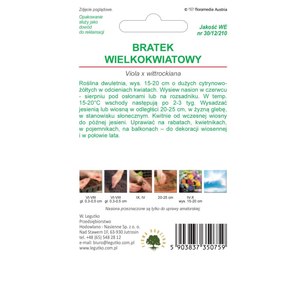 Dvouletá rostlina, 15-20 cm vysoká, s velkými citronově žlutými květy. Výsev semen v červnu až srpnu pod krytem nebo na seťovém lůžku. Vzcházení nastává po 2-3 týdnech.Vysazujte na podzim nebo na jaře na vzdálenost 20-25 cm, do úrodné půdy, na slunné stanoviště. Kvete od časného jara do pozdního podzimu. Pěstujte na záhonech, záhonech, v nádobách, na balkonech - pro jarní dekoraci v polovině léta.