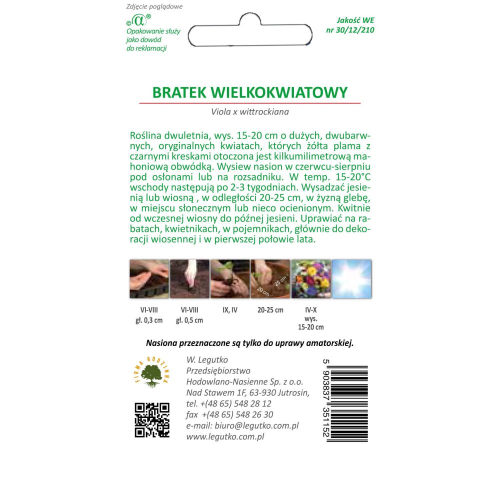 Dvouletá rostlina s velkými, dvoubarevnými, původními květy se žlutou skvrnou s černými linkami obklopenými několika milimetry dlouhým mahagonovým okrajem. Výsev semen v červnu až srpnu pod krytem nebo na seťovém lůžku. Při teplotách 15-20°C dochází ke vzcházení po 2-3 týdnech. Vysazujte na podzim nebo na jaře, ve vzdálenosti 20-25 cm, do úrodné půdy, na slunné nebo mírně zastíněné místo. Kvete od časného jara do pozdního podzimu. Pěstujte na záhonech, záhonech a nádobách hlavně pro jarní dekoraci a v první polovině léta.