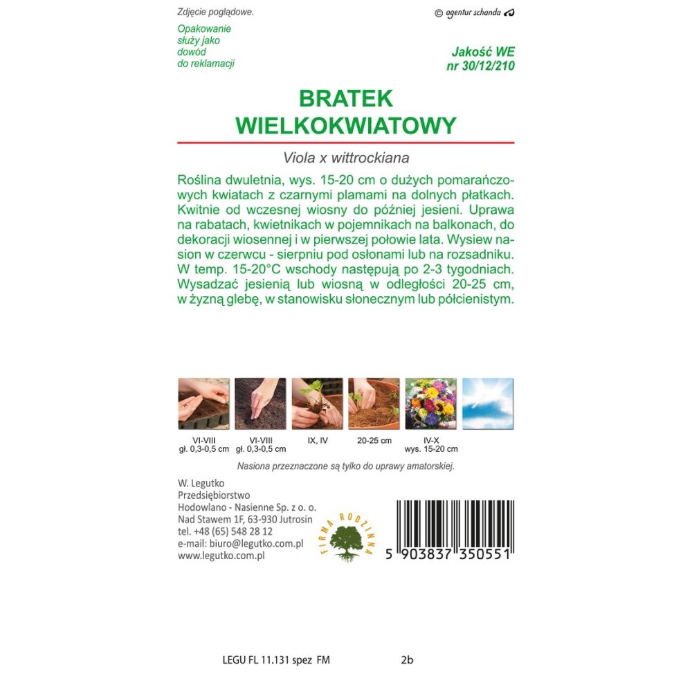 Dvouletá rostlina, 15-20 cm vysoká, s velkými oranžovými květy s černými skvrnami na spodních okvětních lístcích. výsev semen v červnu pod krytem nebo do seťového lůžka. Vzcházení nastává po 2-3 týdnech Sazenice vysaďte na trvalé stanoviště na podzim nebo na jaře následujícího roku ve vzdálenosti 20-25 cm do úrodné půdy na slunné stanoviště. Kvete od časného jara do pozdního podzimu. Pěstuje se na záhonech, záhonech, v nádobách nebo na balkonech. Na jarní dekoraci a v první polovině léta.