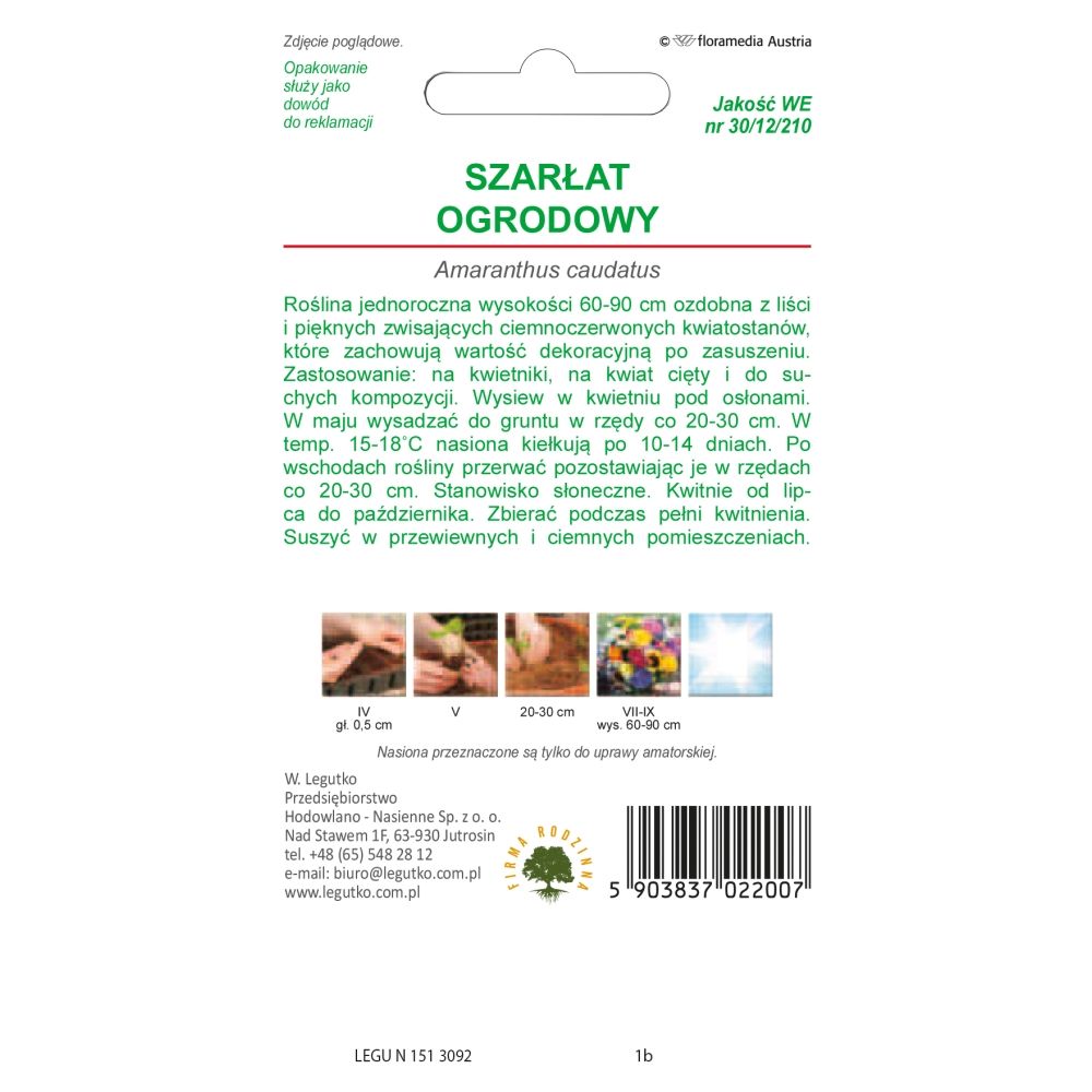 Jednoletá okrasná rostlina, 60-90 cm vysoká, s krásnými, převislými tmavě červenými květenstvími, která si po usušení zachovávají dekorativní hodnotu. Vysévejte v dubnu až květnu do země v řádcích každých 40 cm. Při teplotě 15-18°C semena klíčí po 10-14 dnech. Po vzejití rostliny rozlomte a nechte je v řadách každých 20-30 cm. Slunečná poloha. Kvete od července do října. Vezměte během plného květu. Sušte ve vzdušných a tmavých místnostech. Použití: na bordury, řezané květiny a suché kompozice.