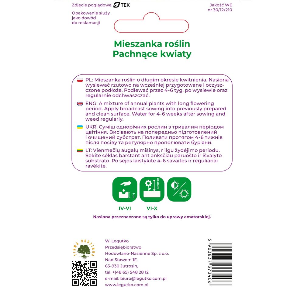 Směs několika druhů jednoletých rostlin, které umožňují vytvořit na zahradě krásný voňavý kout. Díky vhodnému výběru příjemné. květinová vůně nás bude provázet několik měsíců. Semena zasejte v druhé polovině dubna přímo do země. Rostliny sázejte ve vzdálenosti 30 x 40 cm. Ke vzniku dochází po 2-3 týdnech. Pěstujte na slunném místě, v úrodné, středně vlhké půdě. Kvete od poloviny června do poloviny října.