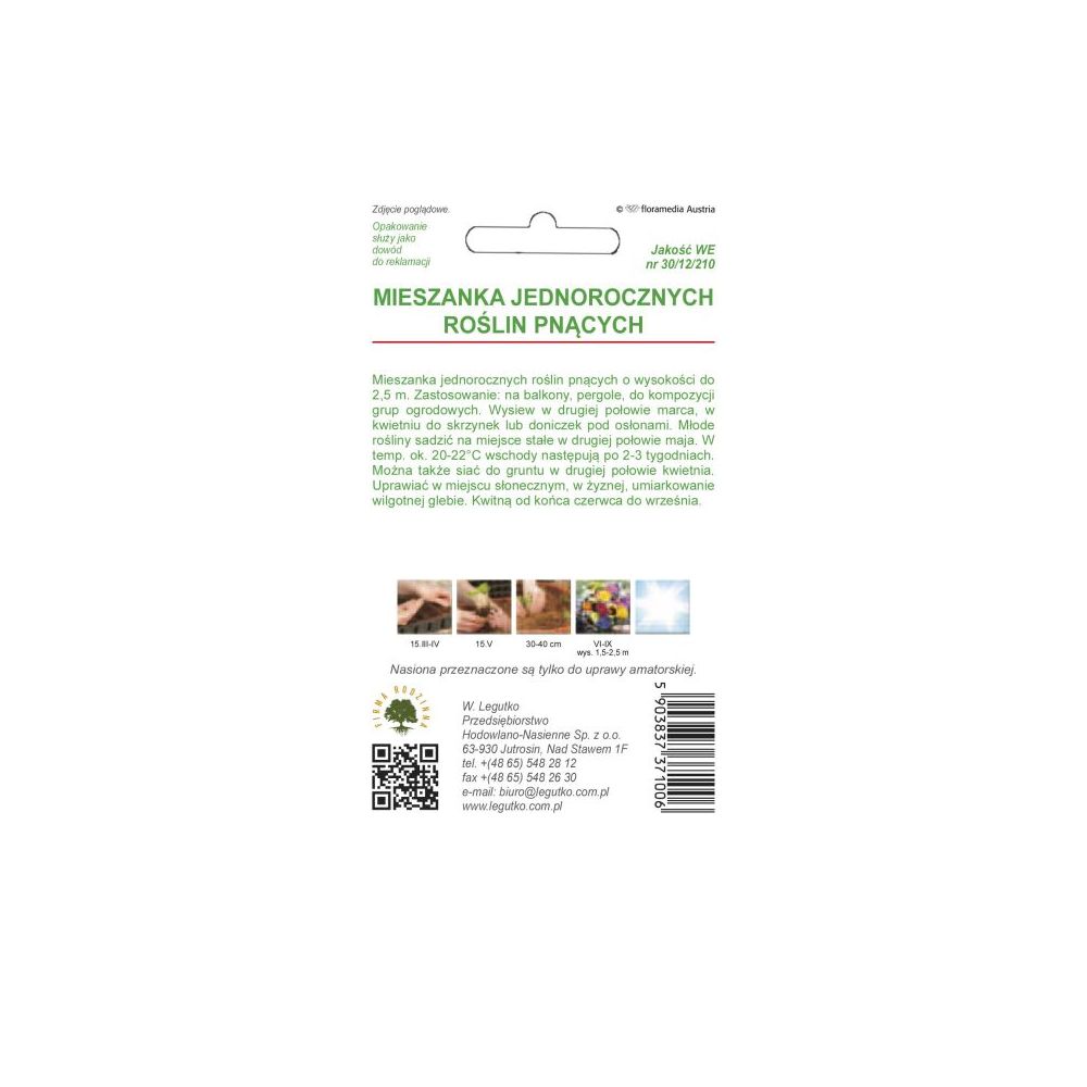 Směs obsahuje: okrasnou dýni, hrách, hrách, okrasné fazole a tunbergii.