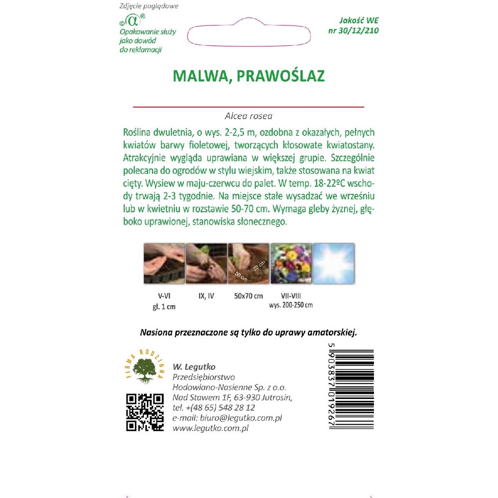 Dvouletá rostlina, 2-2,5 m vysoká, okrasná s velkými, plnými fialovými květy tvořícími klasnatá květenství. Při pěstování ve větší skupině vypadá atraktivně. Zvláště se doporučuje pro zahrady ve venkovském stylu, používá se také jako řezaná květina. Vysazujte na trvalé stanoviště v srpnu až září ve vzdálenosti 50-70 cm. Vyžaduje úrodnou, hluboce kultivovanou půdu a slunné stanoviště.