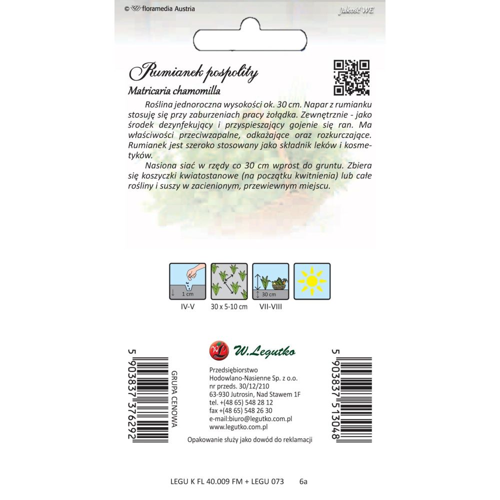 Jednoletá rostlina, vysoká cca 30 cm. Vysévejte poměrně hustě, ve vysílání přímo do země. Sbíráme košíčky květenství (na začátku květu) nebo celé rostliny a sušíme na zastíněném vzdušném místě. Nálev z heřmánku se používá při žaludečních potížích. Zevně - jako dezinfekční prostředek.