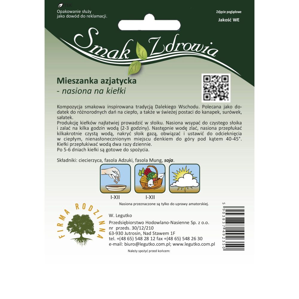 Chuťová kompozice inspirovaná tradicí Dálného východu. Směs obsahuje tato semínka: cizrna, fazole mungo, fazole Adzuki a sójové boby. Klíčky z nich vyrobené jsou cenným zdrojem lehce stravitelného vápníku, bílkovin a mnoha vitamínů. Nejjednodušší způsob výroby klíčků je použít klíček: opláchnutá semena namočte na 3–6 hodin do teplé převařené vody a poté je rovnoměrně rozprostřete na síťku nakličovací misky. Přidejte vodu do spodní úrovně síťky a zajistěte její pravidelné doplňování a výměnu. Klíčky lze vyrobit i ve sklenici: opláchnutá semena nasypte do čisté sklenice a na několik hodin zalijte vodou. Poté vodu slijte, semena opláchněte, sklenici přikryjte gázou, zavažte a umístěte na teplé slunné místo. Dvakrát denně klíčky opláchněte a slijte vodu. Po 4-5 dnech jsou klíčky připraveny k jídlu.