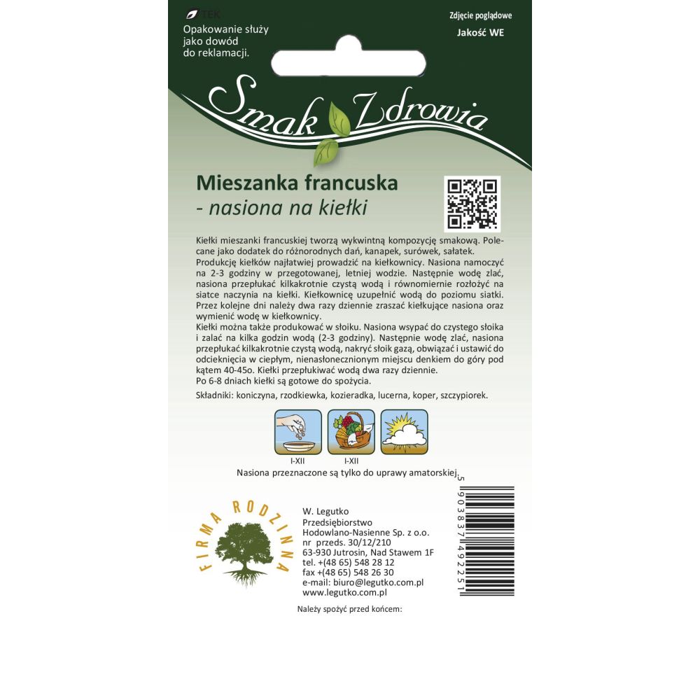 Speciálně složená směs semen: jetel, kopr, pískavice, vojtěška, ředkev, pažitka vytváří vynikající chuťovou kompozici. Optimální obsah makro- a mikroprvků dokazuje jeho jedinečné zdraví prospěšné vlastnosti. Nejjednodušší způsob výroby klíčků je použít klíček: propláchnutá semena namočte na 3–6 hodin do teplé převařené vody a poté je rovnoměrně rozprostřete na pletivo nakličovací nádoby. Přidejte vodu do spodní úrovně síta a zajistěte, aby byla pravidelně doplňována a vyměňována, přičemž v následujících dnech kropte semena. Klíčky lze vyrobit i ve sklenici: opláchnutá semena nasypte do čisté sklenice a na několik hodin zalijte vodou. Poté vodu slijte, semena opláchněte, sklenici přikryjte gázou, zavažte a umístěte na teplé místo bez slunečního záření. Dvakrát denně klíčky opláchněte a slijte vodu. Po 4-5 dnech jsou klíčky připraveny k jídlu.