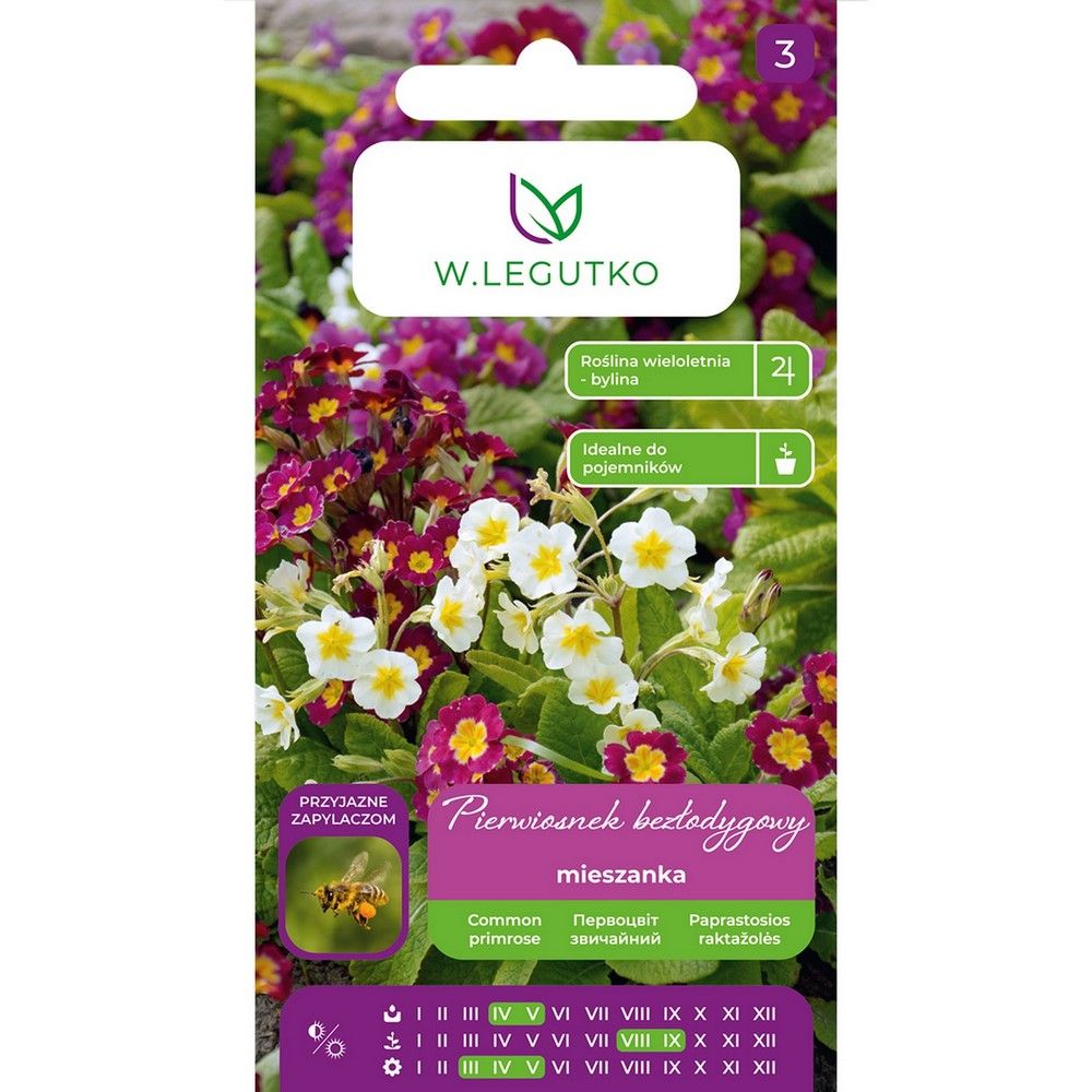 Vytrvalá rostlina, 15-20 cm vysoká, s barevnými květy shromážděnými v pupečníkovitých květenstvích, vyvíjejících se těsně před listovou růžicí. Doporučeno pro květinové záhony, okraje, skalky a pro pěstování v nádobách nebo květináčích. Semena vysévejte zatlačením do země prknem, do krabic nebo na palety. Výsev semen v dubnu až květnu. Pro dosažení rovnoměrného vzcházení umístěte truhlíky na 7-10 dní na chladné místo při teplotě 10°C a poté je přemístěte na 3 týdny do teploty 16-20°C. Sazenice vysazujte na záhony na konci léta ve vzdálenosti 15-20 cm. Kvetou od března do května následujícího roku po výsevu. Pěstujte na stinných nebo slunných, ale ne příliš suchých místech, v úrodné, vlhké půdě.