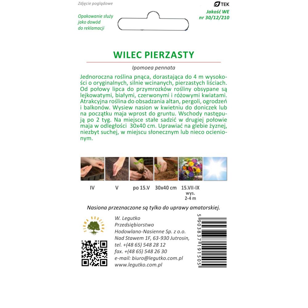 Jednoletá popínavá rostlina dorůstající až 4 m s původními, silně vykrajovanými zpeřenými listy. Od poloviny července až do mrazů jsou rostliny pokryty nálevkovitými, bílými, červenými a růžovými květy. Atraktivní rostlina pro výsadbu altánů, pergol, plotů a balkonů. Semena zasejte v dubnu do květináčů nebo začátkem května přímo do země. Ke vzniku dochází po 2 týdnech. Na trvalé stanoviště se vysazuje v druhé polovině května na vzdálenost 60-60 cm. Pěstujte v úrodné, ne příliš suché půdě, na slunném nebo mírně zastíněném místě.