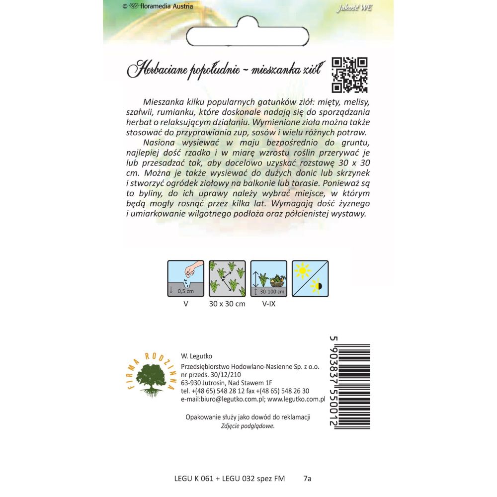 Směs několika oblíbených druhů bylin: máta, meduňka, šalvěj, heřmánek, které se skvěle hodí pro přípravu čajů s relaxačním účinkem. Výše zmíněné bylinky lze také použít k dochucení polévek, omáček a mnoha různých pokrmů. Semena zasévejte v květnu přímo do země, nejlépe zcela výjimečně, a jak rostliny rostou, zastavte je nebo znovu zasaďte tak, aby výsledná vzdálenost byla 30x30 cm. Lze je vysévat i do velkých květináčů nebo truhlíků a vytvořit si bylinkovou zahrádku na balkoně či terase. Protože se jedná o trvalky, měli byste si pro jejich pěstování vybrat místo, kde mohou růst několik let. Vyžadují dosti úrodnou a středně vlhkou půdu a slunné nebo polostinné stanoviště.