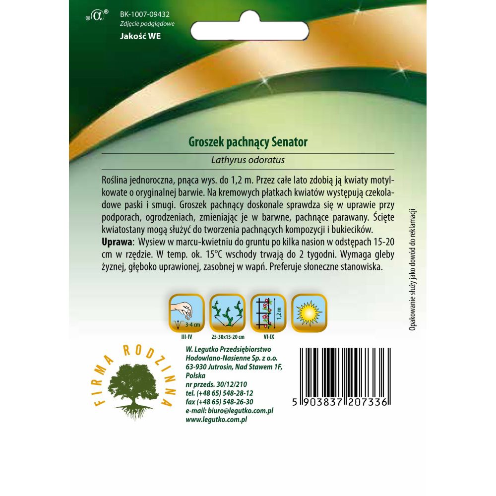 Jednoletá, popínavá rostlina, vysoká až 1,2 m. Po celé léto ji zdobí květy luskovin původní barvy. Na krémových okvětních lístcích jsou čokoládové proužky a pruhy. Sladký hrách je ideální pro pěstování na podpěrách a plotech a proměňuje je v barevné šplhací zástěny. Řezaná květenství lze použít k vytvoření vonných kompozic a kytic. Pěstování: Zasejte několik semen do země v březnu až dubnu v intervalech 15-20 cm za sebou. Při teplotě přibližně 15°C trvá vzcházení až 2 týdny. Vyžadují úrodnou, hluboce kultivovanou půdu, bohatou na vápník. Preferuje slunné stanoviště.