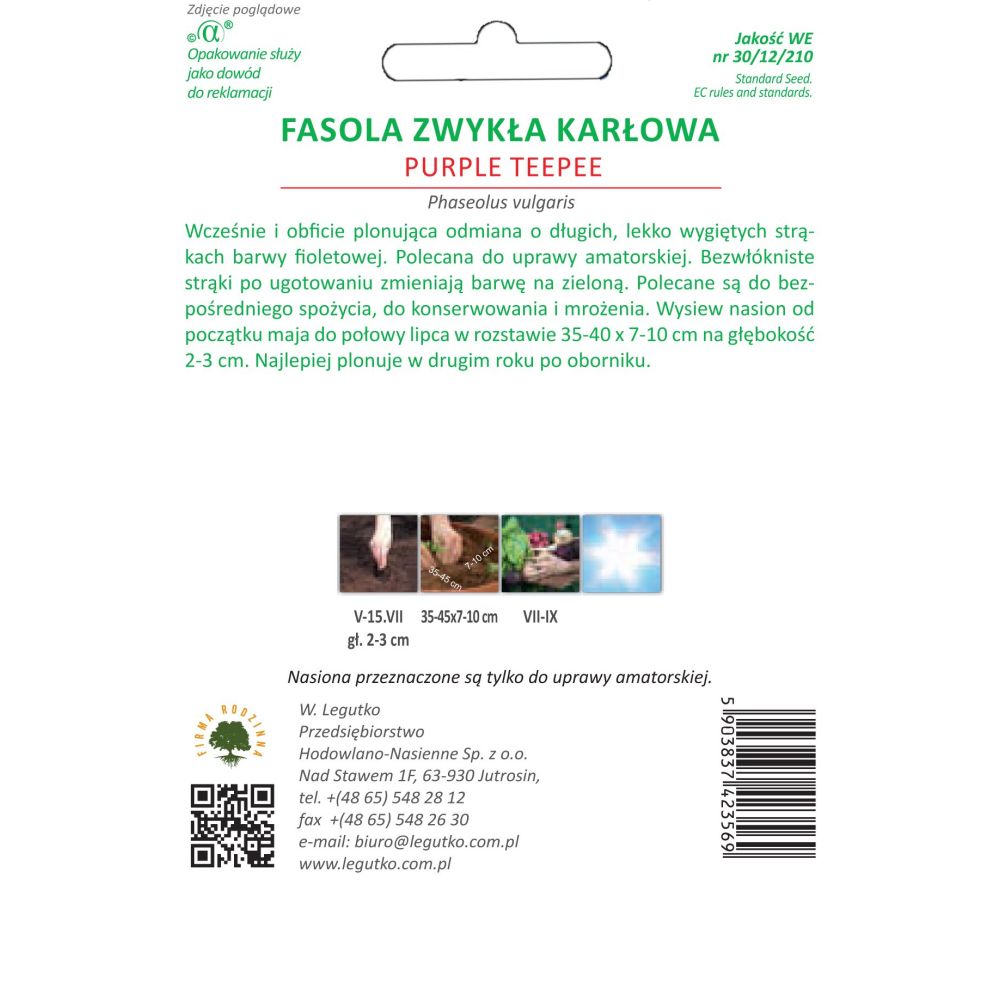 Raná a hojně výnosná odrůda s dlouhými, mírně zakřivenými fialovými lusky. Doporučeno pro amatérské pěstování. Lusky bez vláken po uvaření zezelenají. Doporučují se k přímé konzumaci, konzervaci a mrazení. Semena vysévejte od začátku května do poloviny července na vzdálenost 35-40 x 7-10 cm do hloubky 2-3 cm. Nejlepší je plánovat ve druhém roce po hnojení.