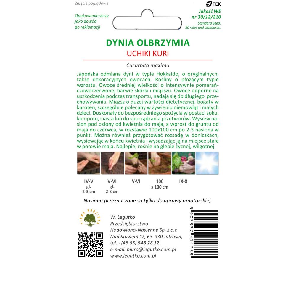Japonská odrůda dýně typu Hokkaido, s originálními, i dekorativními plody. Rostliny s plazivým typem růstu. Středně velké plody s intenzivně oranžově červenou slupkou a dužinou. Plody jsou odolné proti poškození při přepravě a jsou vhodné pro dlouhodobé skladování. Dužnina má vysokou dietní hodnotu, je bohatá na karoten, zvláště se doporučuje pro výživu kojenců a malých dětí. Ideální k přímé konzumaci jako džus, kompot, koláč nebo k přípravě zavařenin. Výsev semen přímo do země v květnu ve vzdálenosti 1 x 1 m, 2-3 semena na bod. Sazenice v květináčích můžete připravit i tak, že je vyséváte koncem dubna a v polovině května vysadíte na trvalé místo. Nejlépe roste v úrodné, vlhké půdě.