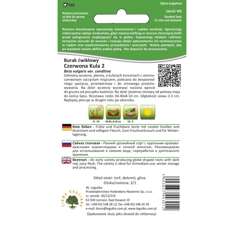 Plodná odrůda s kulovitými kořeny a tmavě červenou šťavnatou dužinou, doporučená k přímé konzumaci, zpracování a zimnímu skladování. Pro brzkou sklizeň zasejte semena začátkem dubna přímo do země. Pro podzimní a zimní sklizeň od poloviny května do konce července. Rozteč rostlin 30-40 x 8-10 cm. Hloubka setí 2-3 cm. Nejlépe plodí ve druhém roce po hnoji.