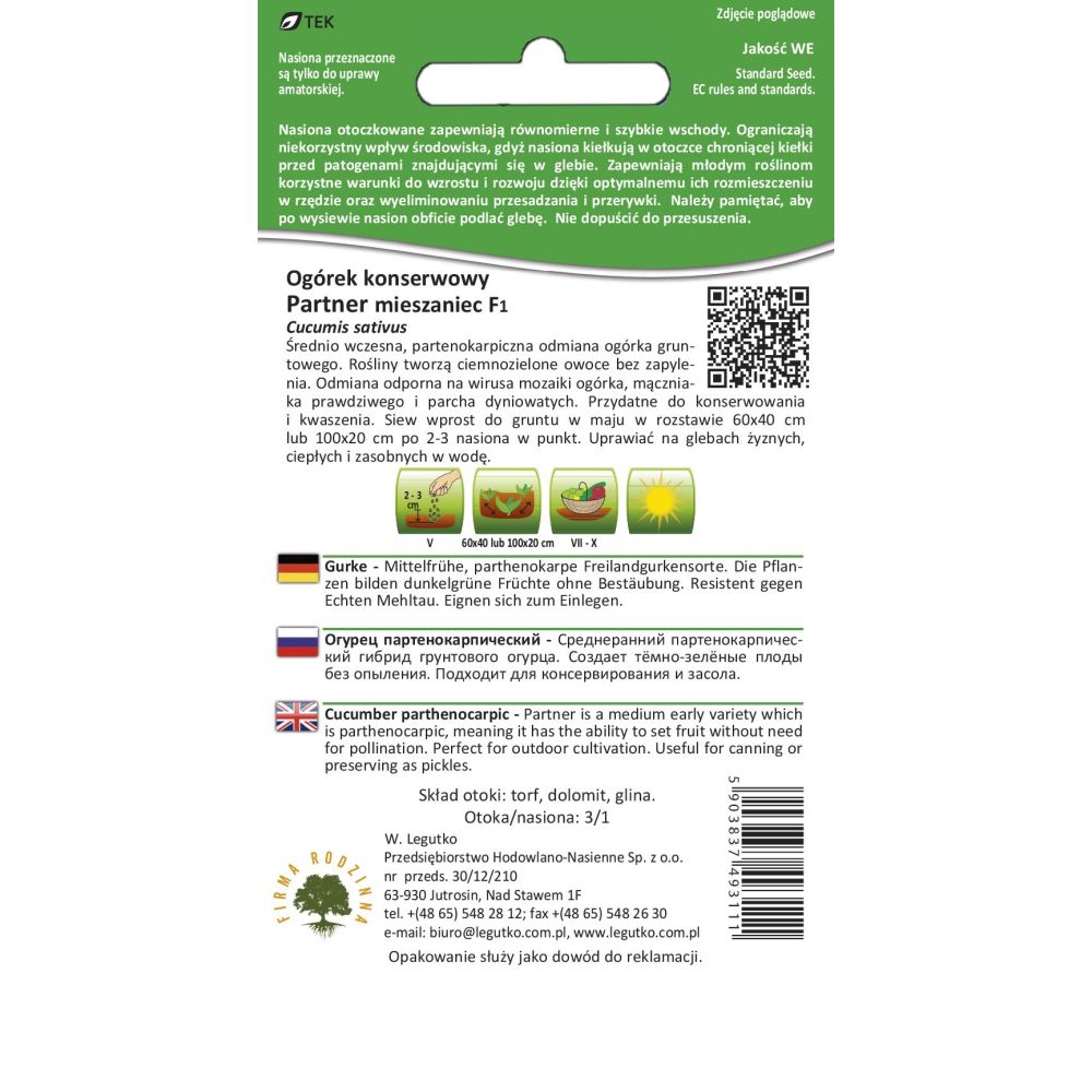 Středně raná, partenokarpická odrůda polní okurky. Rostliny produkují tmavě zelené plody bez opylení. Odrůda je odolná vůči viru mozaiky okurky, padlí a strupovitosti tykvovité. Užitečné pro konzervaci a moření. Vysévejte přímo do země v květnu ve vzdálenosti 60x40 cm nebo 100x20 cm, 2-3 semena na bod. Pěstujte v úrodných, teplých a na vodu bohatých půdách.