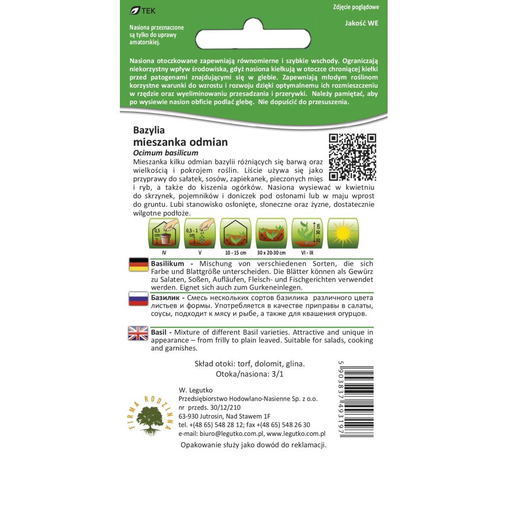 Směs několika odrůd bazalky lišících se barvou, velikostí a tvarem rostlin. Listy se používají jako koření do salátů, omáček, kastrolů, pečeného masa a ryb a také k nakládání okurek. Semena vysévejte v dubnu do truhlíků, nádob a květináčů pod kryty nebo v květnu přímo do země. Má ráda chráněné, slunné stanoviště a úrodnou, dostatečně vlhkou půdu.