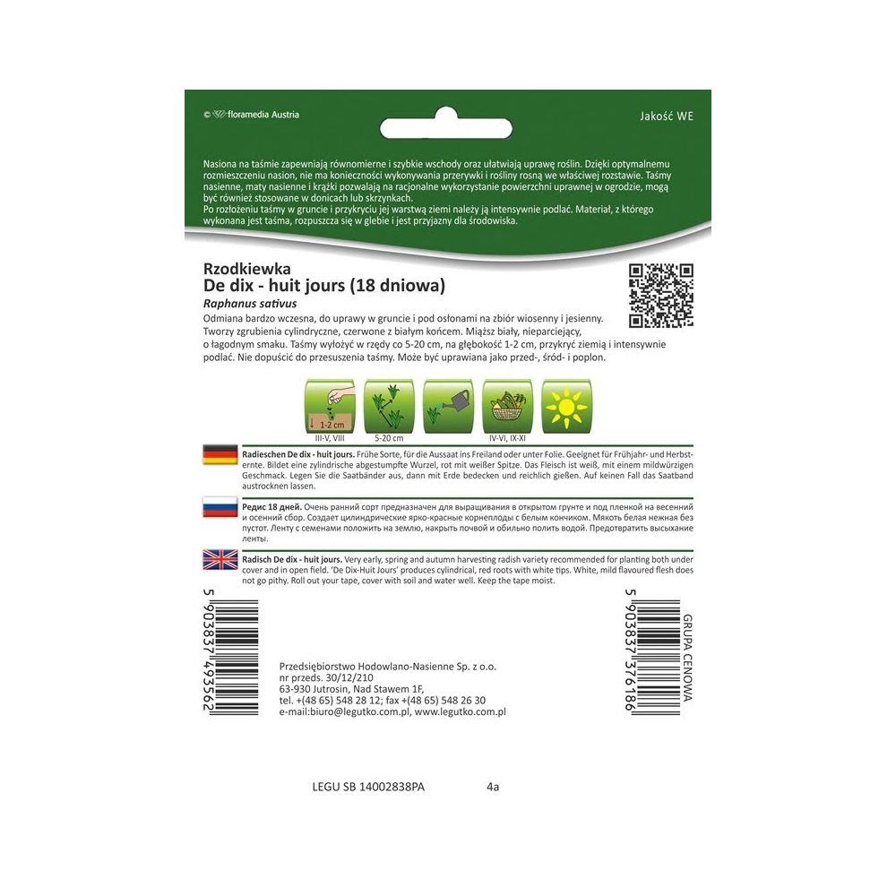 Velmi raná odrůda, pro pěstování v zemi a pod krytem pro jarní a podzimní sklizeň. Tvoří válcovité, červené vybouleniny s bílou špičkou. Dužnina je bílá, neperzistentní, s jemnou chutí. Pásy umístěte do řad každých 5-20 cm, do hloubky 1-2 cm, zasypte zeminou a intenzivně zalévejte. Nenechte pásku zaschnout. Lze ji pěstovat jako předplodinu, střední a meziplodinu.