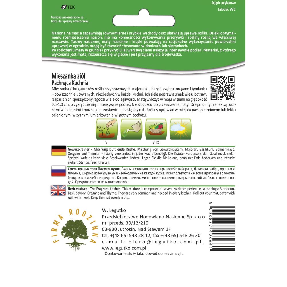 Směs několika druhů koření: majoránka, saturejka, bazalka, oregano a tymián - běžně používané a nezbytné v každé kuchyni. Jejich bylinka zlepšuje chuť mnoha pokrmů. Nálev z nich připravený ulevuje od mnoha neduhů. V květnu umístěte rohož do země do hloubky 0,5-1 cm, zasypte ji zeminou a intenzivně zalévejte. Nenechte podložku vyschnout. Oregano a tymián jsou vytrvalé rostliny a lze je ponechat i druhý rok. Rostliny by měly být pěstovány na slunném nebo mírně zastíněném místě, v úrodné, středně vlhké půdě.