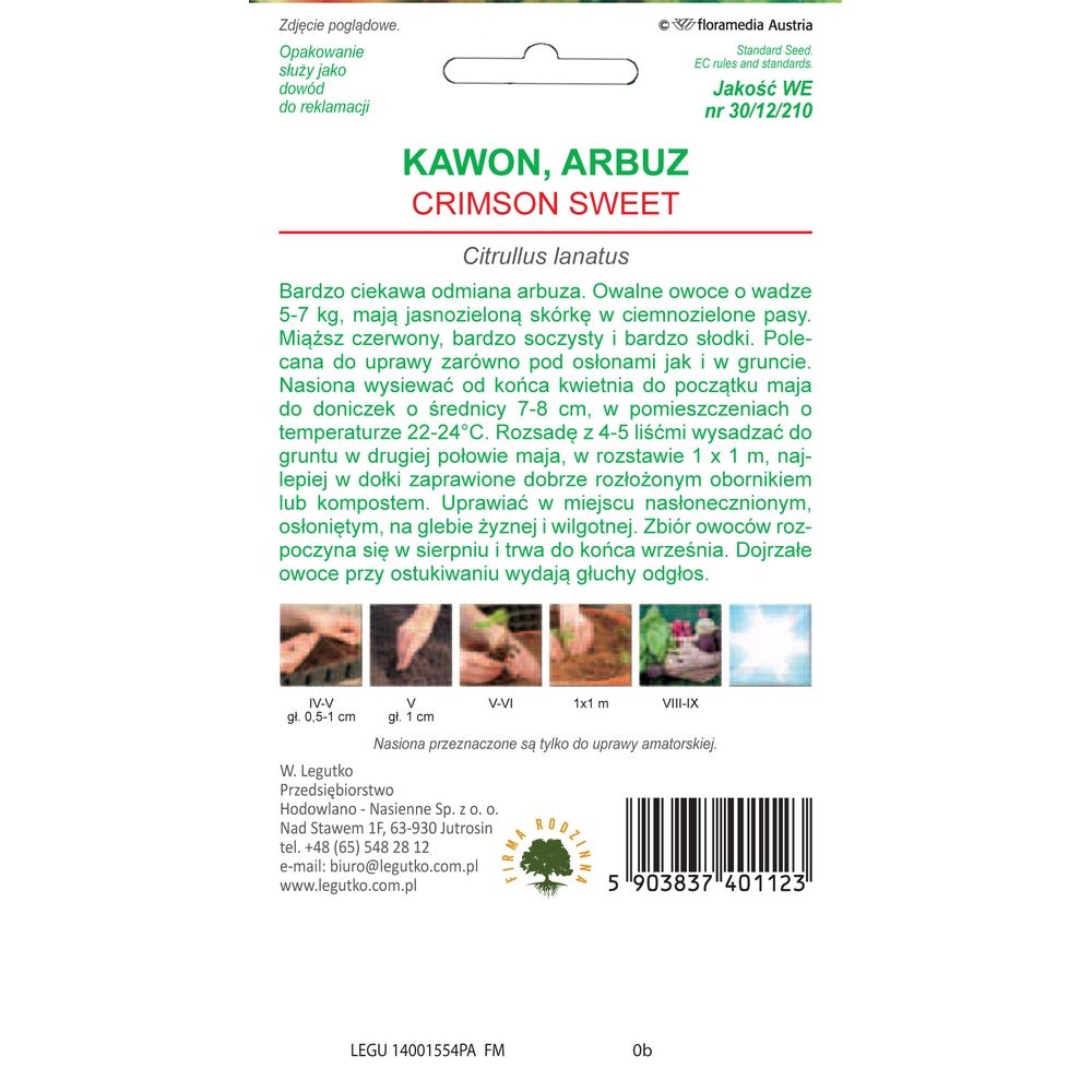 Velmi zajímavá odrůda vodního melounu. Oválné plody o hmotnosti 5 - 7 kg, mají světle zelenou slupku s tmavě zelenými pruhy. Dužnina je červená, velmi šťavnatá a velmi sladká. Doporučuje se pro pěstování pod krytem i v zemi. Semena vysévejte koncem dubna nebo začátkem května do květináčů o průměru 7-8 cm, v místnostech s teplotou 22-24°C. Sazenice se 4-5 listy zasaďte do země v druhé polovině května ve vzdálenosti 1,0 x 1,0 m, nejlépe do jam zasypaných dobře prohnilým hnojem nebo kompostem. Pěstujte na slunném, chráněném místě, v úrodné a vlhké půdě. Sklizeň ovoce začíná v srpnu a trvá do konce září. Zralé plody znějí při poklepání dutě.