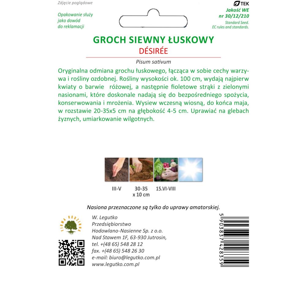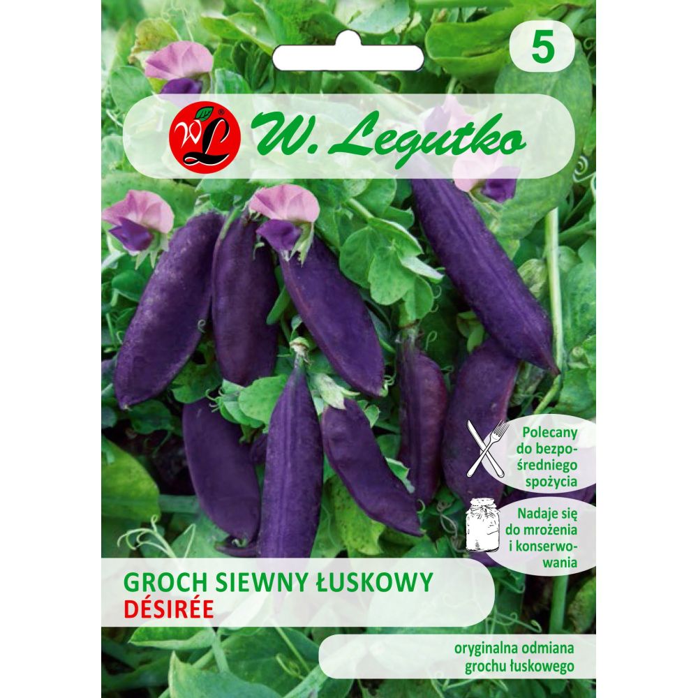 Originální odrůda cukrového hrášku kombinující vlastnosti zeleniny a okrasné rostliny. Rostliny vysoké asi 100 cm vytvářejí nejprve růžové květy a poté fialové lusky se zelenými semeny, které se skvěle hodí k přímé konzumaci, konzervaci a mrazení.