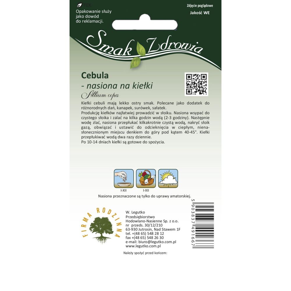 Klíčky jsou pro tělo zdrojem cenných živin. Cibulová semena jsou bohatá na vitamín C, stejně jako na síru, zinek a mangan. Cibulové klíčky mají lehce pikantní chuť. Konzumace cibule má příznivý vliv v boji proti nadváze, hypertenzi a cukrovce. Cibulové klíčky se doporučují jako přísada do salátů, salátů a sendvičů. Nejjednodušší způsob výroby klíčků je použít klíček: propláchnutá semena namočte na 3–6 hodin do teplé převařené vody a poté je rovnoměrně rozprostřete na pletivo nakličovací nádoby. Přidejte vodu do spodní úrovně sítě a zajistěte, aby byla pravidelně doplňována a vyměňována, přičemž v následujících dnech kropte semena. Klíčky lze vyrobit i ve sklenici: opláchnutá semena nasypte do čisté sklenice a na několik hodin zalijte vodou. Poté vodu slijte, semena opláchněte, sklenici přikryjte gázou, zavažte a umístěte na teplé místo bez slunečního záření. Dvakrát denně klíčky opláchněte a slijte vodu. Po 3-4 dnech jsou klíčky připraveny k jídlu.
