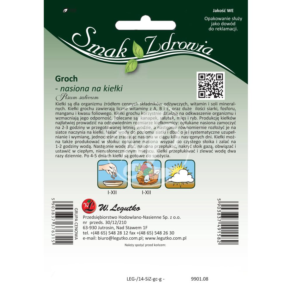 Klíčky jsou pro tělo zdrojem cenných živin, vitamínů a minerálních solí. Hrachové klíčky obsahují četné vitamíny A, B a E, stejně jako velké množství síry, fosforu, manganu a kyseliny listové. Hrachové klíčky blahodárně působí na odkyselení organismu a posílení jeho imunity. Doporučují se na sendviče, saláty, maso a ryby. Nejjednodušší způsob výroby klíčků je použít klíček odpovídající velikosti: propláchnutá semínka namočte na 2-3 hodiny do převařené vlažné vody a poté je rovnoměrně rozprostřete na pletivo nakličovací nádoby. Nalijte vodu až po úroveň mřížky a zajistěte, aby byla pravidelně doplňována a vyměňována, přičemž v následujících dnech kropte semena. Klíčky lze vyrobit i ve sklenici: opláchnutá semena nasypte do čisté sklenice a zakryjte vodou na 1-2 hodiny. Poté vodu vylijte, semena opláchněte, sklenici přikryjte gázou, zavažte a dejte na teplé místo bez slunečního záření. Dvakrát denně klíčky opláchněte a slijte vodu. Po 4-5 dnech jsou klíčky připraveny k jídlu.