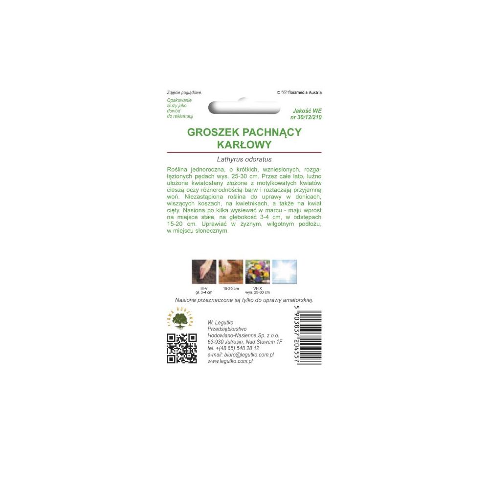 Jednoletá rostlina s krátkými, vzpřímenými, rozvětvenými výhony, 25-30 cm vysokými. Po celé léto volně uspořádaná květenství složená z papilionovitých květů lahodí očím rozmanitými barvami a vydávají příjemnou vůni. Nepostradatelná rostlina pro pěstování v květináčích, závěsných koších, záhonech i jako řezaná květina. Zasévejte několik semen v březnu - dubnu přímo na trvalé místo, do hloubky 3-4 cm, v intervalech 15-20 cm. Pěstujte v úrodné, vlhké půdě, na slunném místě.
