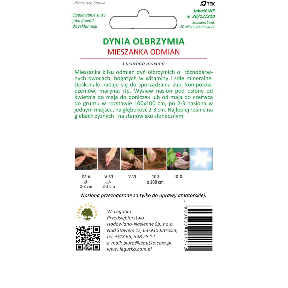 Směs několika odrůd obřích dýní s barevnými plody, plody bohaté na vitamíny a minerální soli. Skvěle se hodí k přípravě polévek, kompotů, džemů apod. Semena vysévejte koncem dubna do květináčů nebo v květnu do země ve vzdálenosti 1x1 m, 2-3 semínka na jedno místo, do hloubky 2-3 cm . Nejlépe roste v úrodné půdě a na slunném stanovišti.