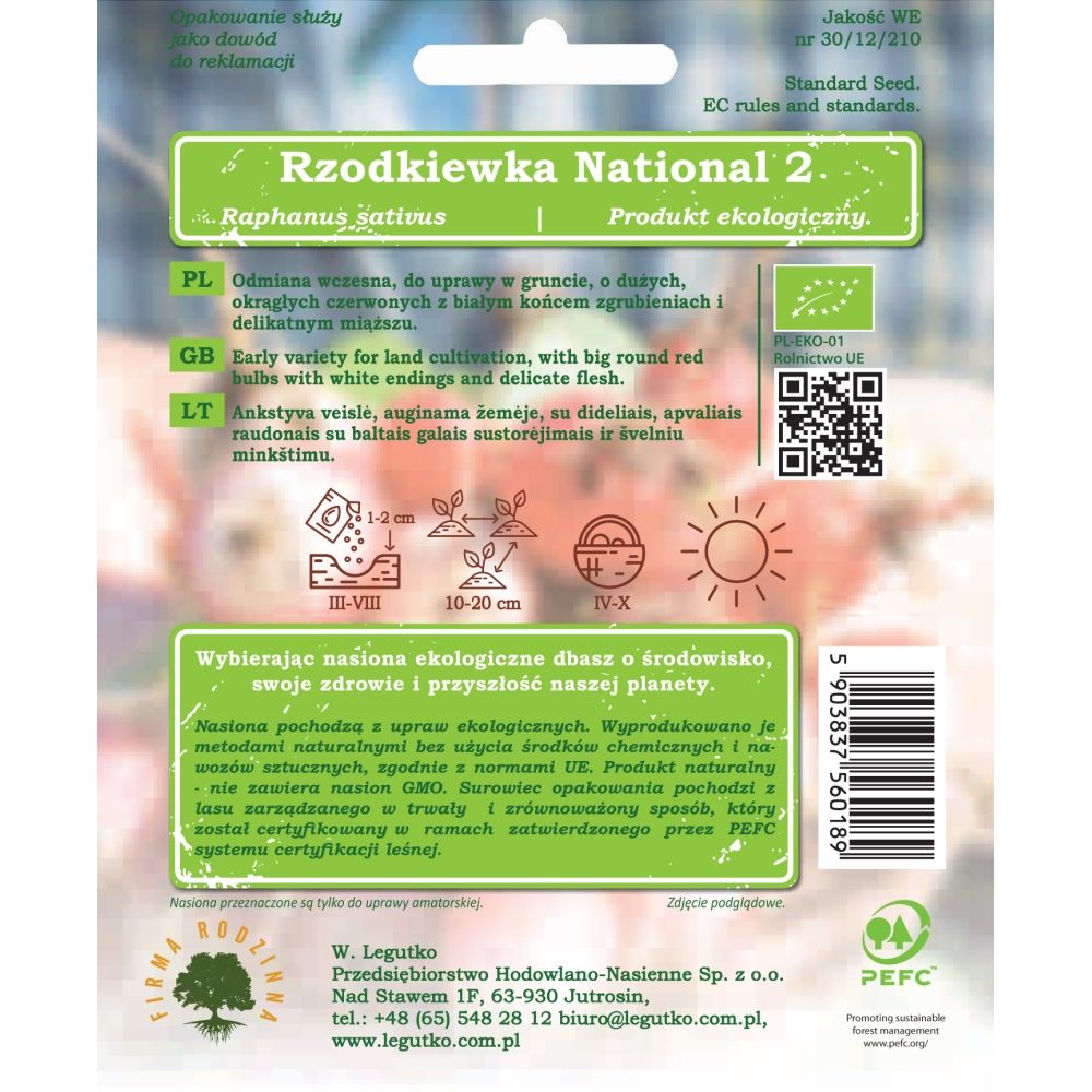Semena pocházejí z ekologického zemědělství. Byly vyrobeny přírodními metodami bez použití chemikálií a umělých hnojiv, v souladu s normami EU. Přírodní produkt - neobsahuje GMO semena. Balicí papír je vyroben z materiálů z dobře obhospodařovaných lesů s certifikací FSC a dalších kontrolovaných zdrojů.