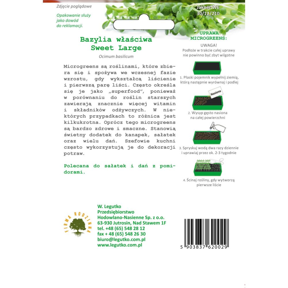 Microgreens - Bazalka - Ocimum basilicum - Sweet Large - zelená - 3,00g