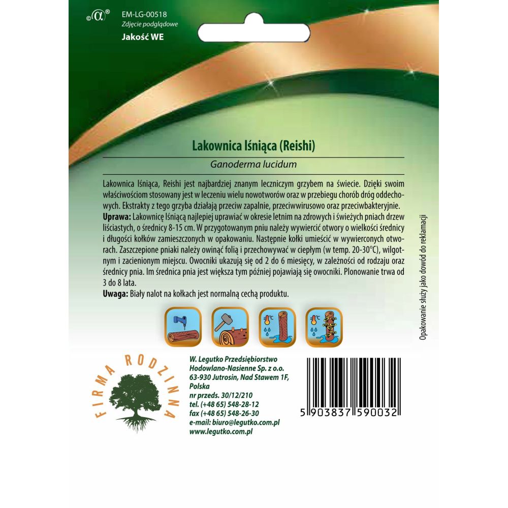 Pěstování: Lesklý strom je nejlepší pěstovat v létě na zdravých a čerstvých kmenech listnatých stromů o průměru 8-15 cm. Do připraveného kmene vyvrtejte otvory o průměru a délce hmoždinek, které jsou součástí balení. Poté vložte hmoždinky do vyvrtaných otvorů. očkované pahýly zabalíme do fólie a uložíme na teplé (teplota 20-30 stupňů), vlhké a tmavé místo. Plodnice se objevují během 2 až 6 měsíců v závislosti na druhu a průměru kmene. Čím větší je průměr kmene, tím později se objevují plodnice. Sklizeň trvá od 3 do 8 let.