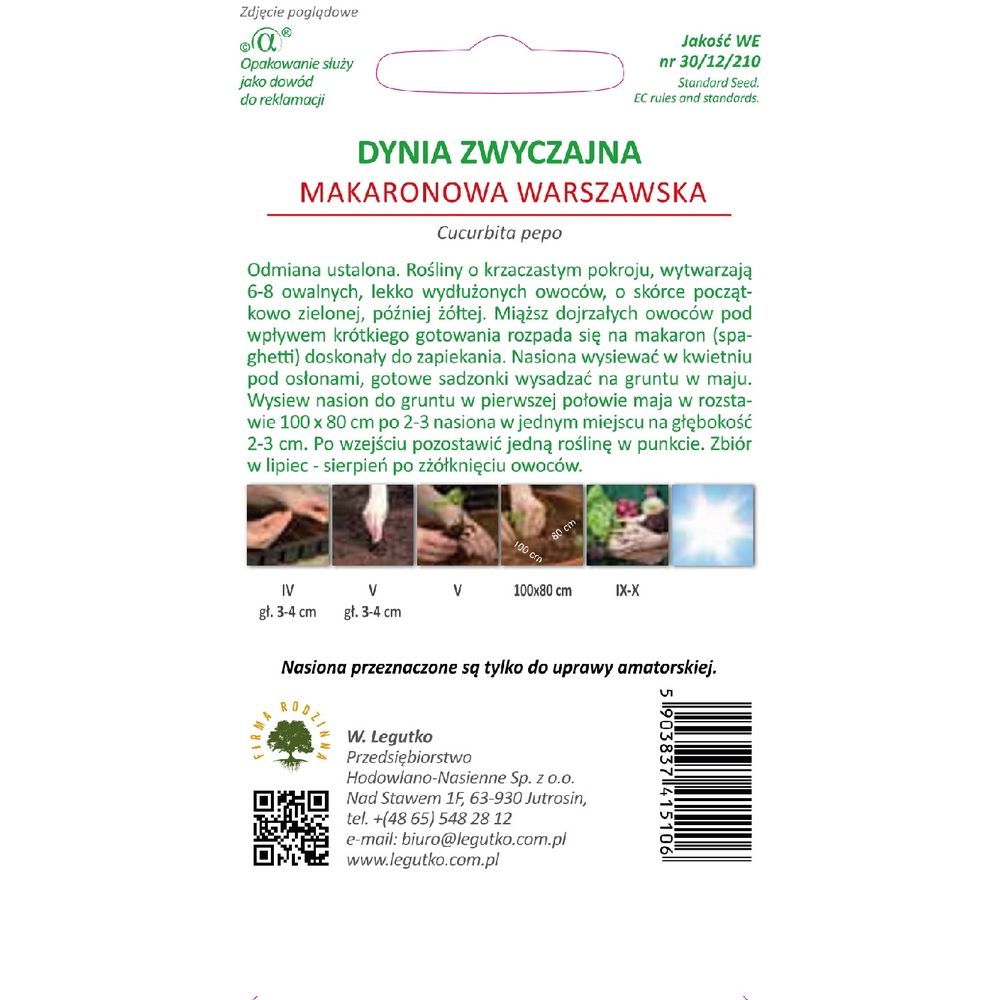 Odrůda zavedená. Rostliny keřovitého tvaru vytvářejí 6-8 oválných, mírně protáhlých plodů, se slupkou zpočátku zelenou, později žlutou. Po krátkém vaření se dužina zralého ovoce rozpadne na těstoviny (špagety), ideální na pečení. Semena vysévejte do země v první polovině května ve vzdálenosti 1 x 1 m, 2-3 semena na jedno místo v hloubce 2-3 cm. Po vzejití nechte jednu rostlinu na místě. Sklizeň v říjnu poté, co plody zežloutnou.