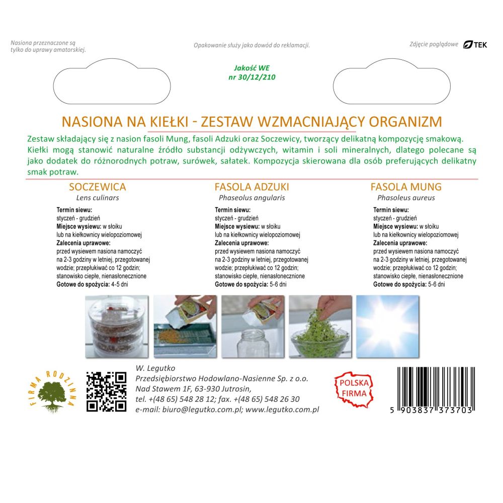Sada obsahující semínka čočky, fazole mungo a fazole Adzuki. Konzumace klíčků těchto rostlin se doporučuje zejména na podzim a v zimě jako přírodní doplněk stravy. Je chutným, výživným a na vitamíny bohatým doplňkem pokrmů, který mimo jiné obohacuje chuť. saláty, saláty a sendviče.