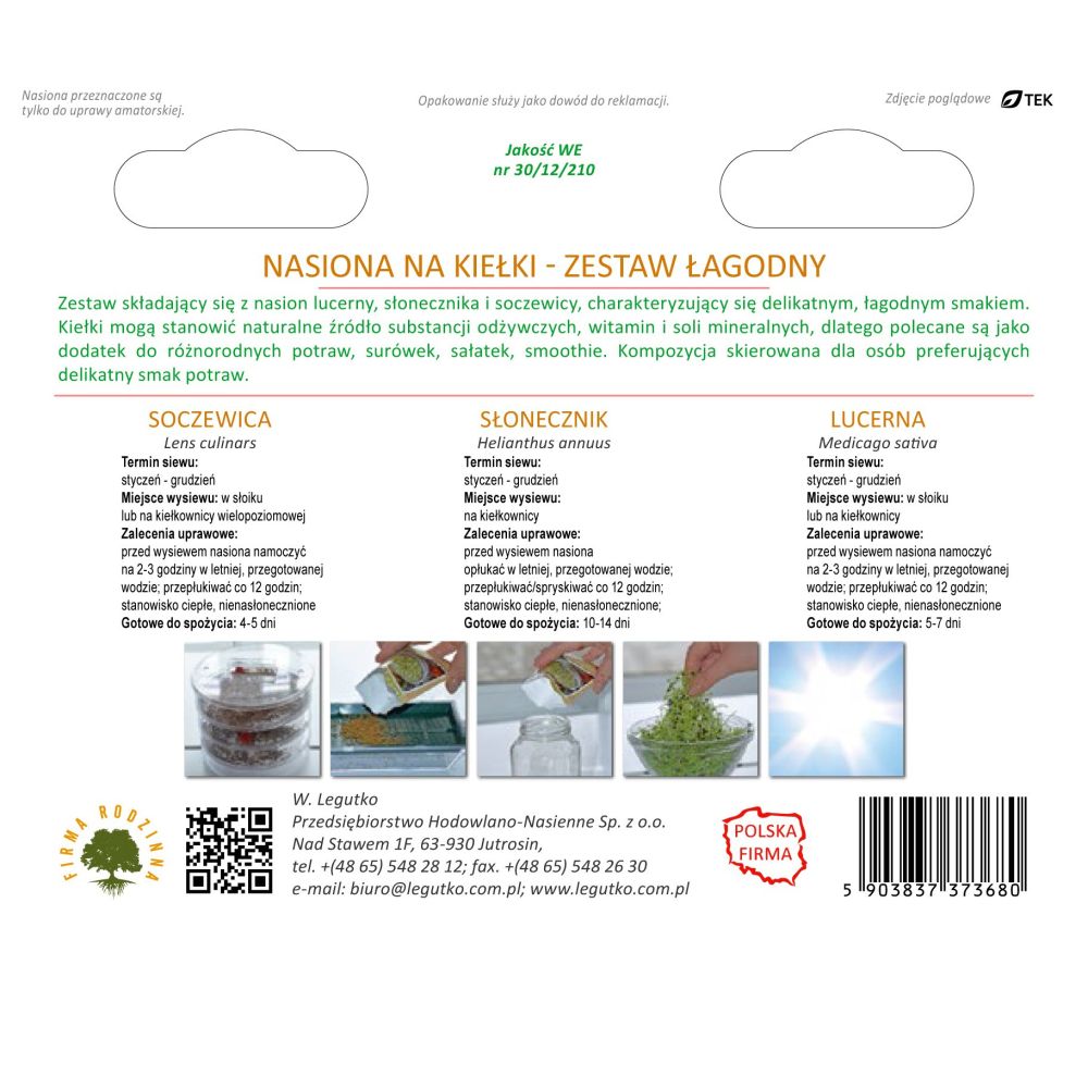 Sada semen vojtěšky, slunečnice a čočky, jejichž klíčky se vyznačují jemnou jemnou chutí, obsahující klíčky vojtěšky, slunečnice a čočky. Složení je určeno pro lidi, kteří preferují jemnou chuť jídla.