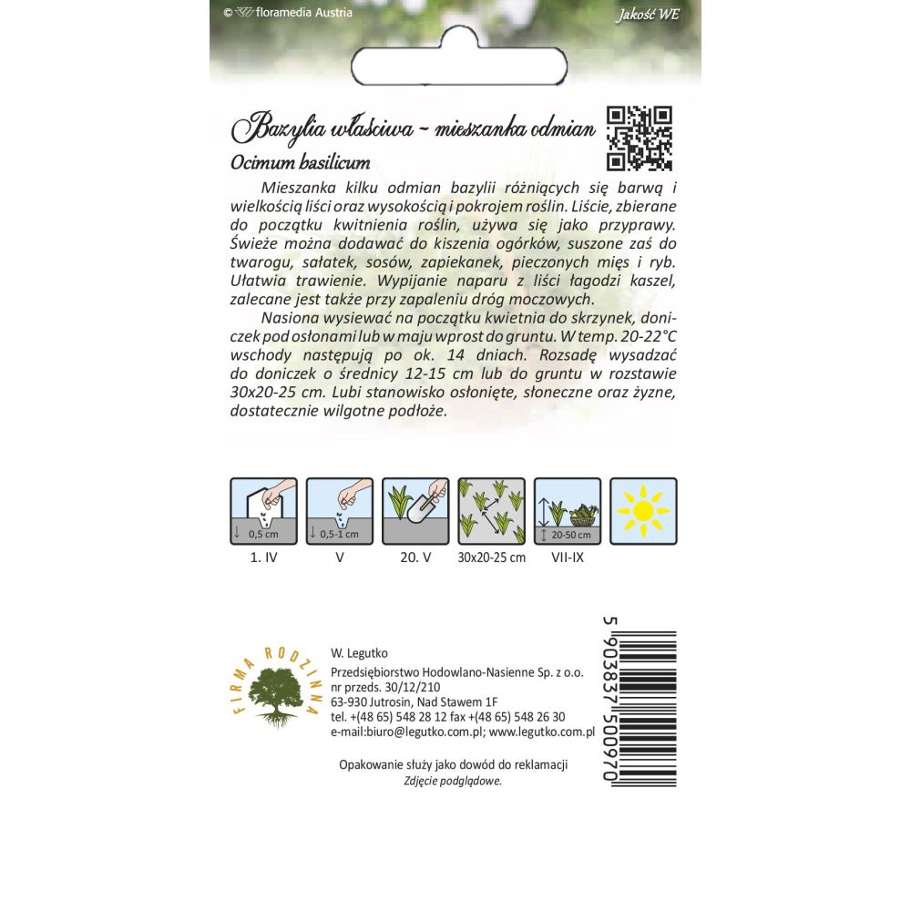 Směs několika odrůd bazalky lišících se barvou a velikostí listů i výškou a tvarem rostlin. Jako koření se používají listy sbírané předtím, než rostliny začnou kvést. Čerstvé lze přidat do nakládaných okurek a sušené do tvarohu, salátů, omáček, kastrolů, pečených mas a ryb. Usnadňuje trávení. Pití nálevu z listů zmírňuje kašel a doporučuje se i při infekcích močových cest. Semena vysévejte na začátku dubna do truhlíků, květináčů pod kryty nebo v květnu přímo do země. Při teplotě 20-22 °C dochází ke vzcházení přibližně po 14 dnech. Sazenice sázejte do květináčů o průměru 12-15 cm nebo do země ve vzdálenosti 30x20-25 cm. Má ráda chráněné, slunné stanoviště a úrodnou, dostatečně vlhkou půdu.
