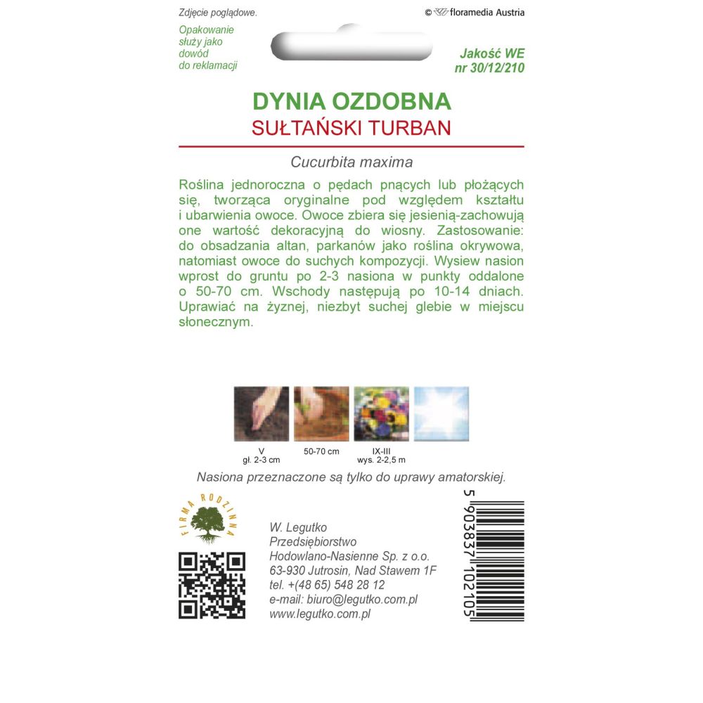Jednoletá rostlina s popínavými nebo plazivými výhonky, vytvářející plody jedinečného tvaru a barvy. Plody se sklízejí na podzim – dekorativní hodnotu si uchovávají až do jara. Použití: pro výsadbu altánů a plotů jako půdní pokryv a ovoce pro suché kompozice. Semena zasejte přímo do země, 2-3 semena ve vzdálenosti 50-70 cm. Ke vzniku dochází po 10-14 dnech. Pěstujte v úrodné, ne příliš suché půdě na slunném místě.