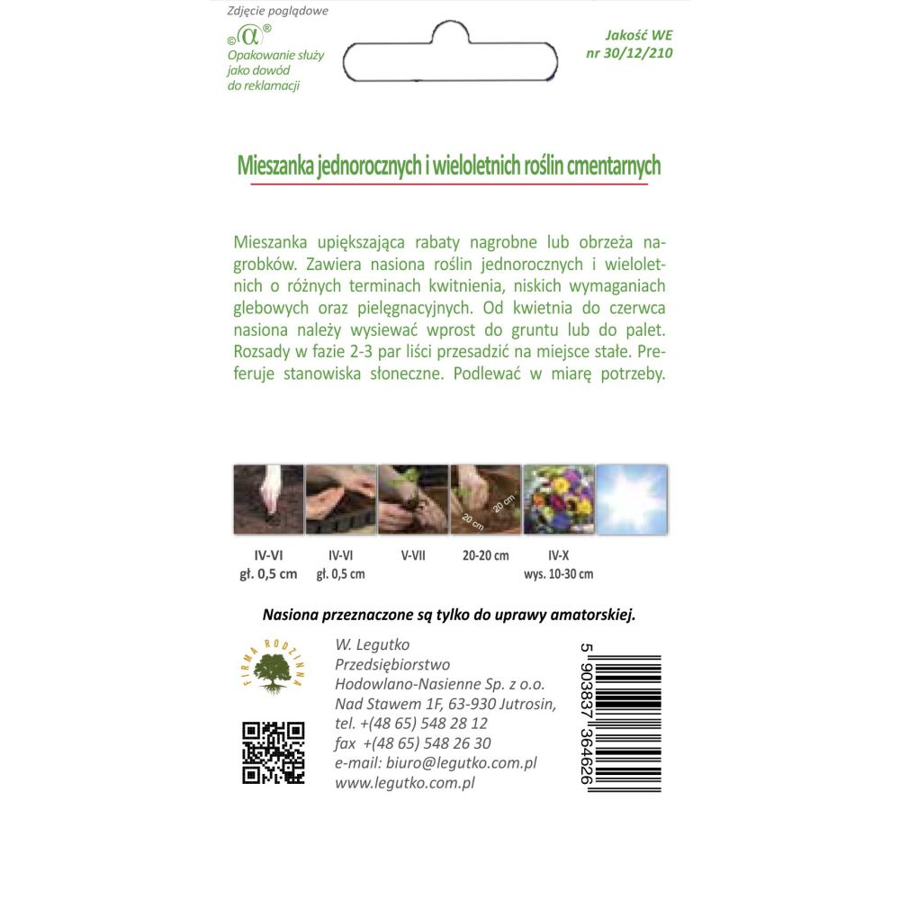 Směs, která zkrášluje okraje náhrobků nebo okraje náhrobků. Obsahuje semena jednoletých a víceletých rostlin s různým datem kvetení, nízkými nároky na půdu a péči. Od dubna do června by se semena měla vysévat přímo do země nebo na palety. Sazenice přesaďte na trvalé místo, když mají 2-3 páry listů. Preferuje slunné polohy. Voda podle potřeby.