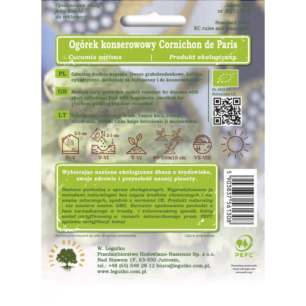 Semena pocházejí z ekologického zemědělství. Byly vyrobeny přírodními metodami bez použití chemikálií a umělých hnojiv, v souladu s normami EU. Přírodní produkt - neobsahuje GMO semena. Balicí papír je vyroben z materiálů z dobře obhospodařovaných lesů s certifikací FSC a dalších kontrolovaných zdrojů.
