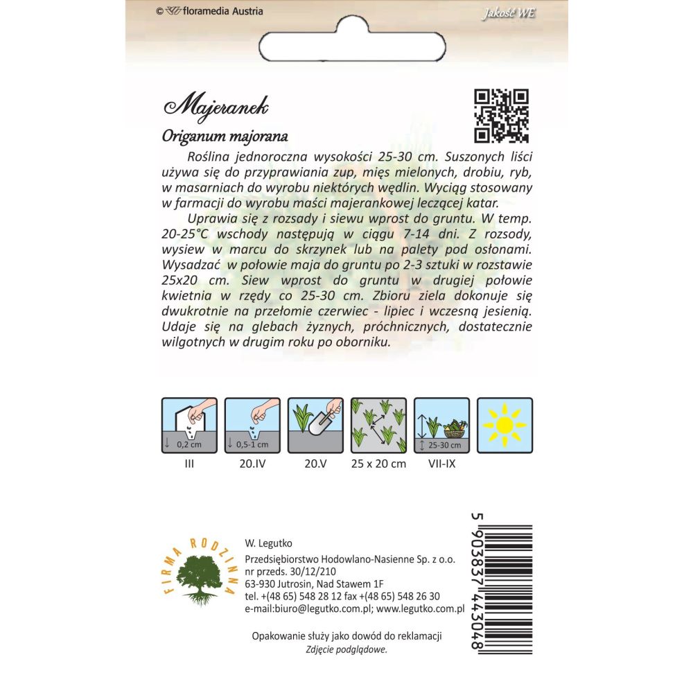 Extrakt používaný ve farmacii k výrobě majoránkové masti k léčbě nachlazení. Pěstuje se ze sazenic a vysévá přímo do země. Při teplotě 20-25 ° C dochází ke vzcházení