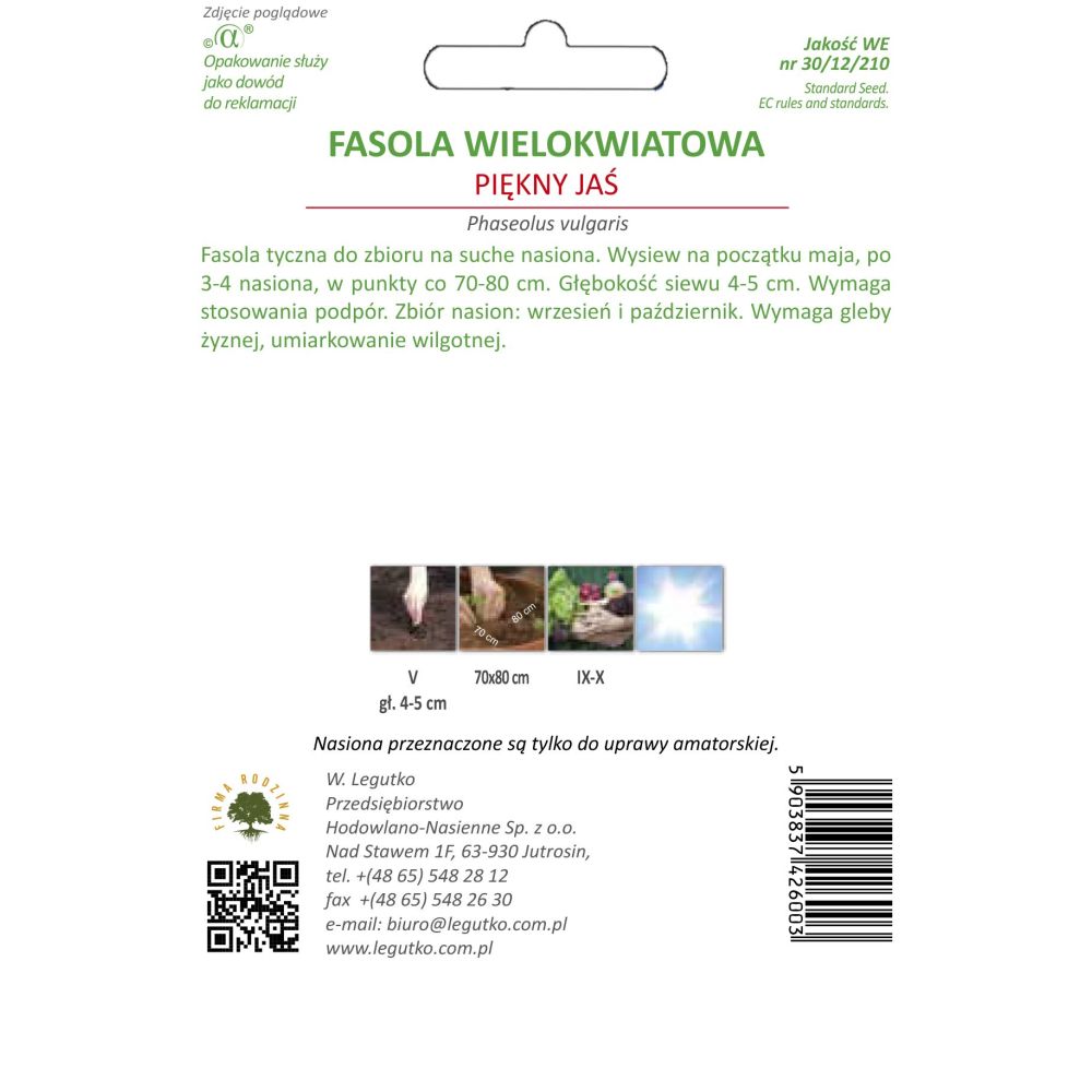 Fazole pro sklizeň ze suchých semen Vysévejte na začátku května, 3-4 semena, na hroty každých 70-80 cm. Hloubka setí 4-5 cm. Vyžaduje použití podpěr. Sběr semen: září a říjen. Vyžaduje úrodnou, středně vlhkou půdu.