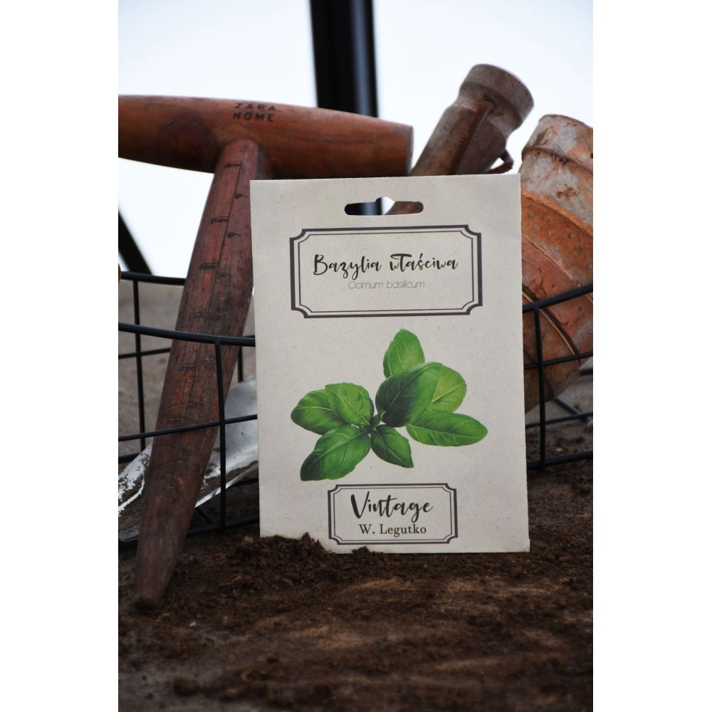 Mimořádně oblíbená jednoletá rostlina využívaná především pro kulinářské a bylinářské účely. Aromatické listy se sklízejí před květem rostlin a používají se čerstvé nebo sušené. Čerstvé lze přidat do nakládaných okurek a rajčat, sušené do tvarohu, salátů, omáček, kastrolů, pečených mas a ryb. Jsou široce používány ve středomořské kuchyni. Pití nálevu z bazalkových listů zmírňuje kašel, usnadňuje trávení, doporučuje se i při zánětech močových cest. Rostlina dorůstá do výšky 50 cm a je vhodná pro pěstování v květináčích, nádobách a bylinkových zahrádkách. Semena vysévejte od dubna do května do truhlíků nebo v květnu přímo na trvalé místo. Při teplotách 20-25 °C trvá vzcházení 7-14 dní. Sazenice sázejte v druhé polovině května (až pomine strach z mrazu) - do řádků každých 30 cm.