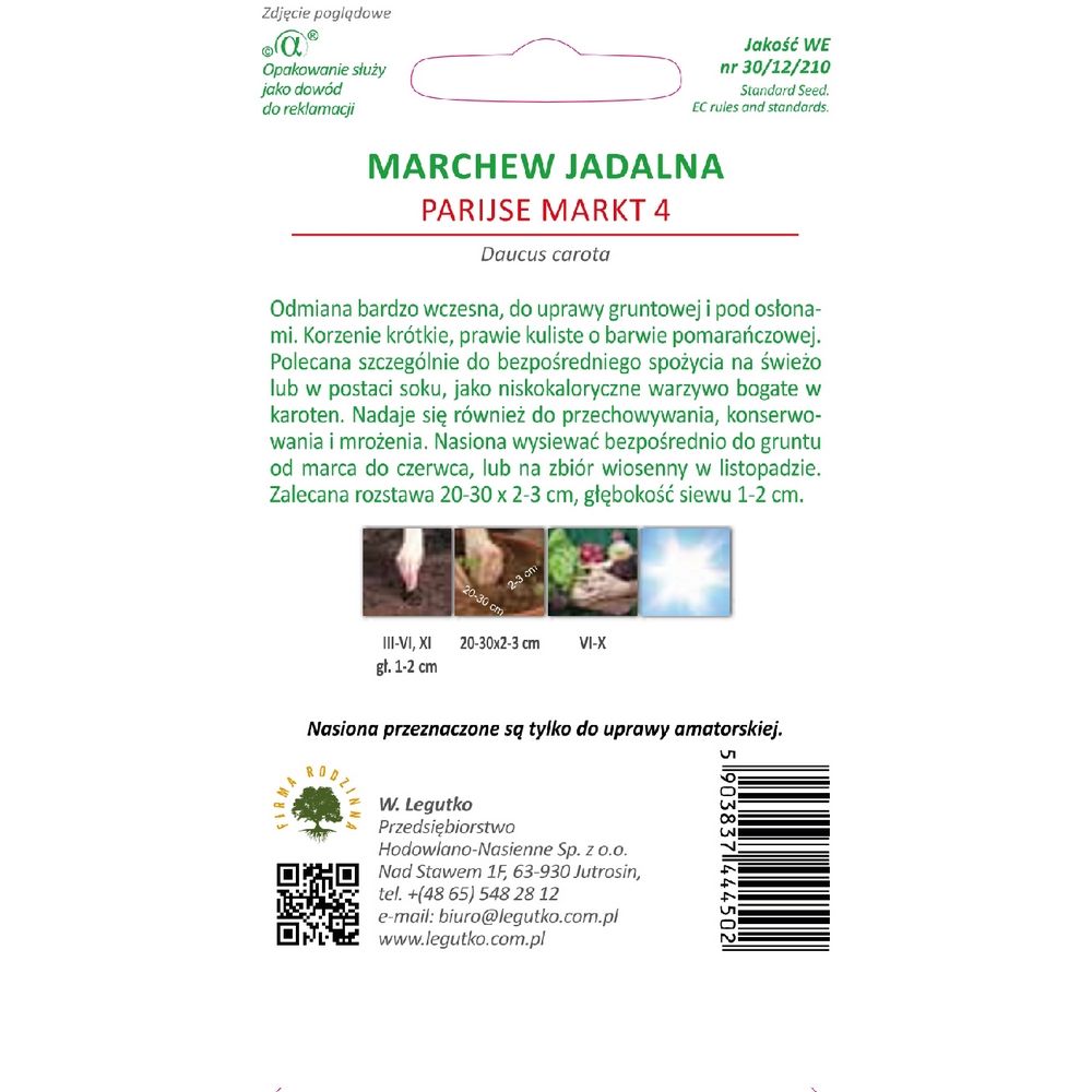 Velmi raná odrůda, pro pěstování v zemi a pod krytem. Kořeny jsou krátké, téměř kulovité a oranžové barvy. Doporučujeme zejména k přímé konzumaci v čerstvém stavu nebo ve formě šťávy, jako nízkokalorická zelenina bohatá na karoten. Je také vhodný pro skladování, konzervování a mrazení. Semena zasejte do země na podzim nebo brzy na jaře pomocí nejranějších zařízení. Doporučený rozteč 20-25 x 3 cm, hloubka setí 1 cm.