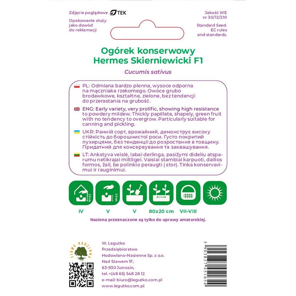 Raná, velmi úrodná hybridní odrůda, produkující převážně samičí květy. Rostliny jsou vysoce odolné vůči peronospoře. Plody jsou tlustě papilární, tvarované, zelené, bez sklonu k přílišnému růstu. Zvláště užitečné pro konzervaci a moření. Výsev semen v květnu do řádků každých 80-100 cm. Vysévejte do řádků jednotlivě nebo do hnízd, 2-3 semena každých 15 cm. Ke vzniku dochází po 7-14 dnech. Pro urychlení růstu a vývoje rostlin je lze pokrýt netkanou textilií nebo perforovanou fólií. Vyžaduje silně vyhnojenou, na vodu vydatnou, propustnou a výhřevnou půdu.